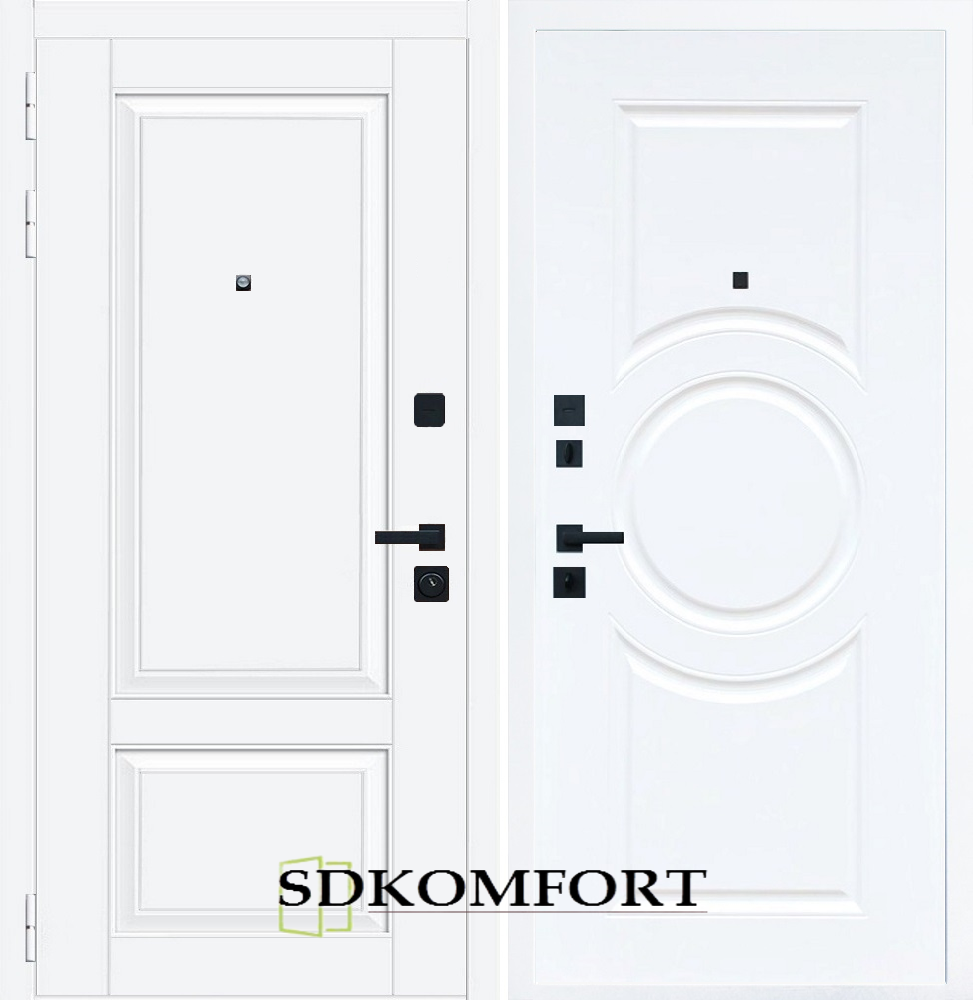 Внешняя сторона : Лист металла 1.8мм. + Декоративная панель МДФ 12мм. Цвет "Белый матовый"