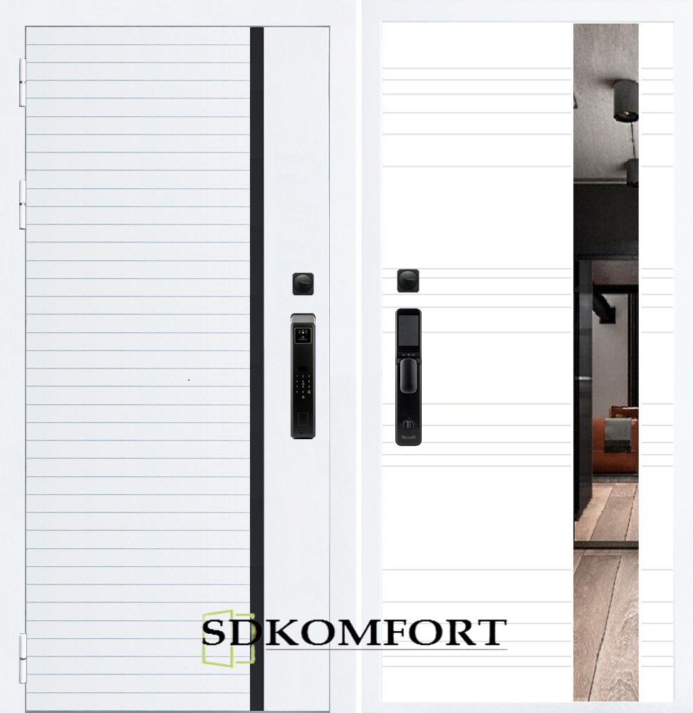 Внешняя сторона : Лист металла 1.8мм. + МДФ 12мм. Цвет "Белый матовый"
