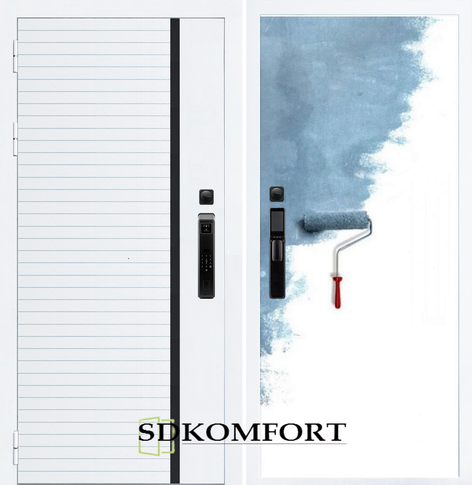 Внешняя сторона : Лист металла 1.8мм. + МДФ 12мм. Цвет "Белый матовый"