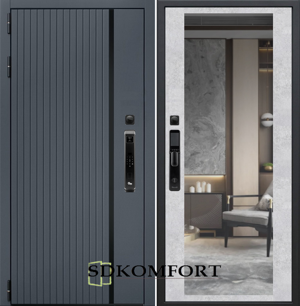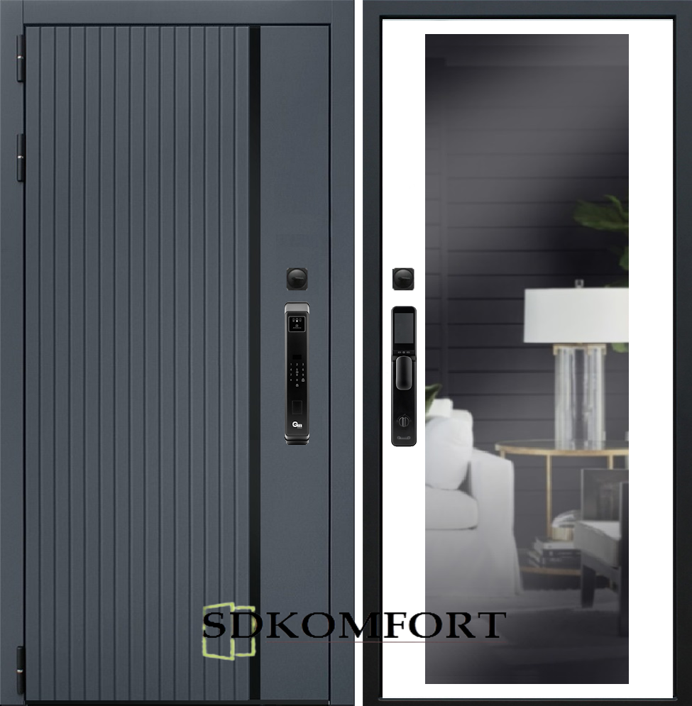 Внешняя сторона : Лист металла 1.8мм. + МДФ 12мм. Цвет "Графит"