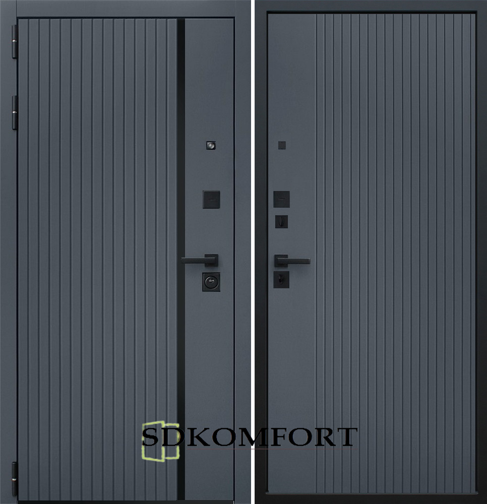 Внешняя сторона : Лист металла 1.8мм. + Декоративная панель МДФ 16мм. Цвет "Грфит"