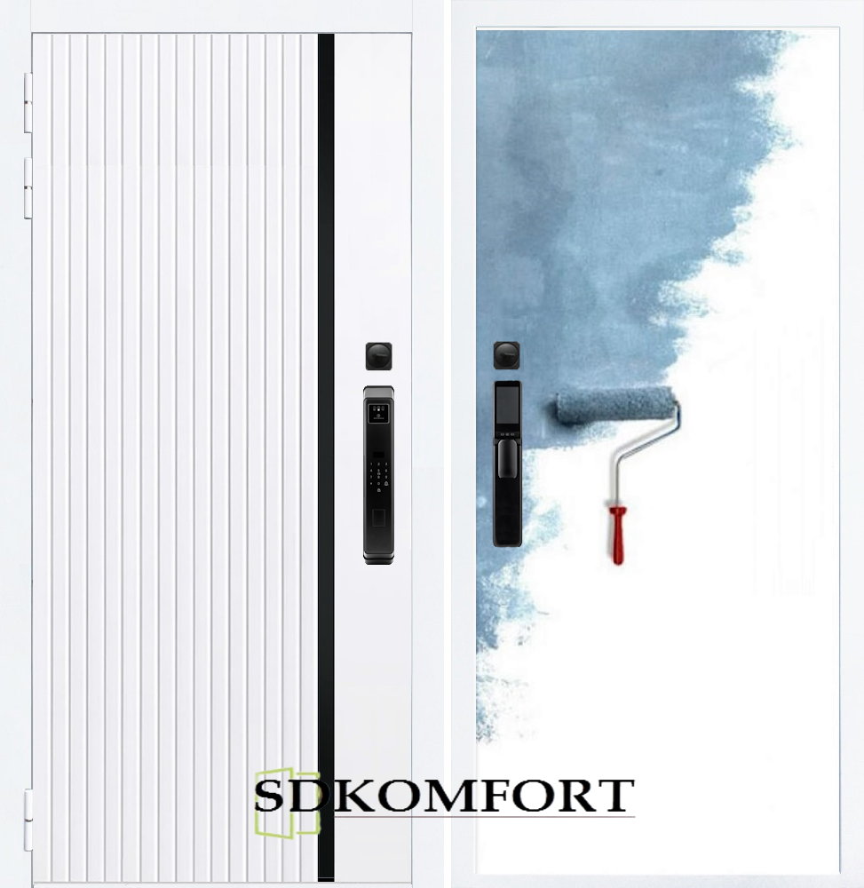 Внешняя сторона : Лист металла 1.8мм. + МДФ 12мм. Цвет "Белый Матовый"