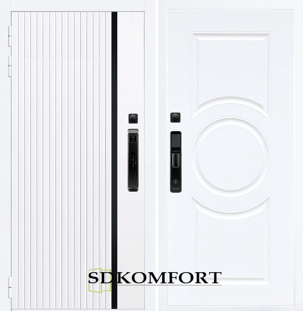 Внешняя сторона : Лист металла 1.8мм. + МДФ 12мм. Цвет "Белый Матовый"