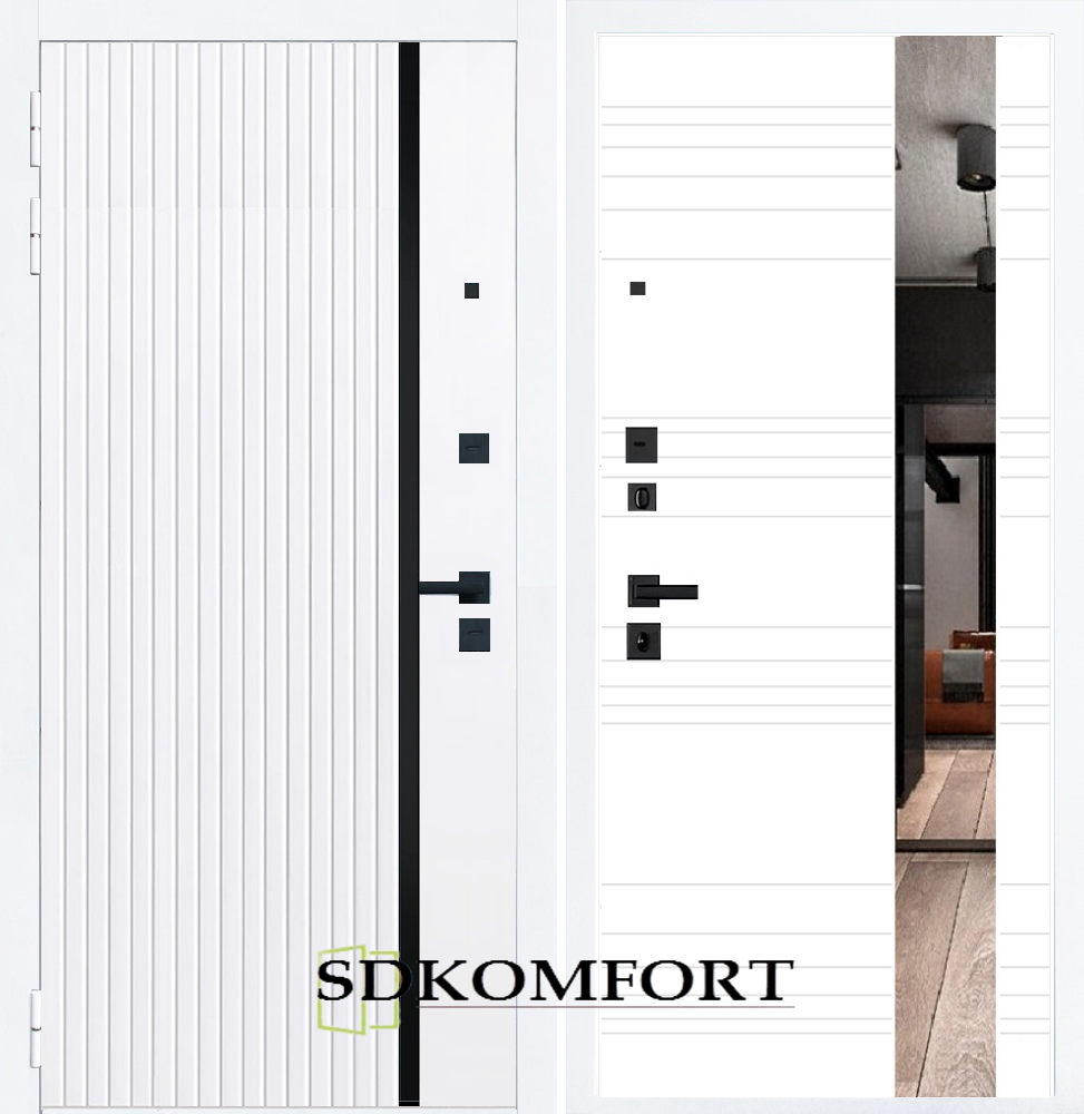Внешняя сторона : Лист металла 1.8мм. + Декоративная панель МДФ 12мм. Цвет "Белый матовый"