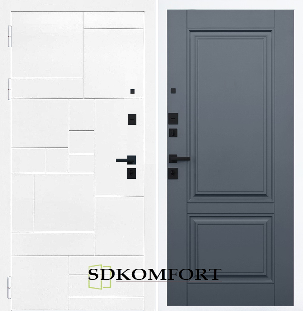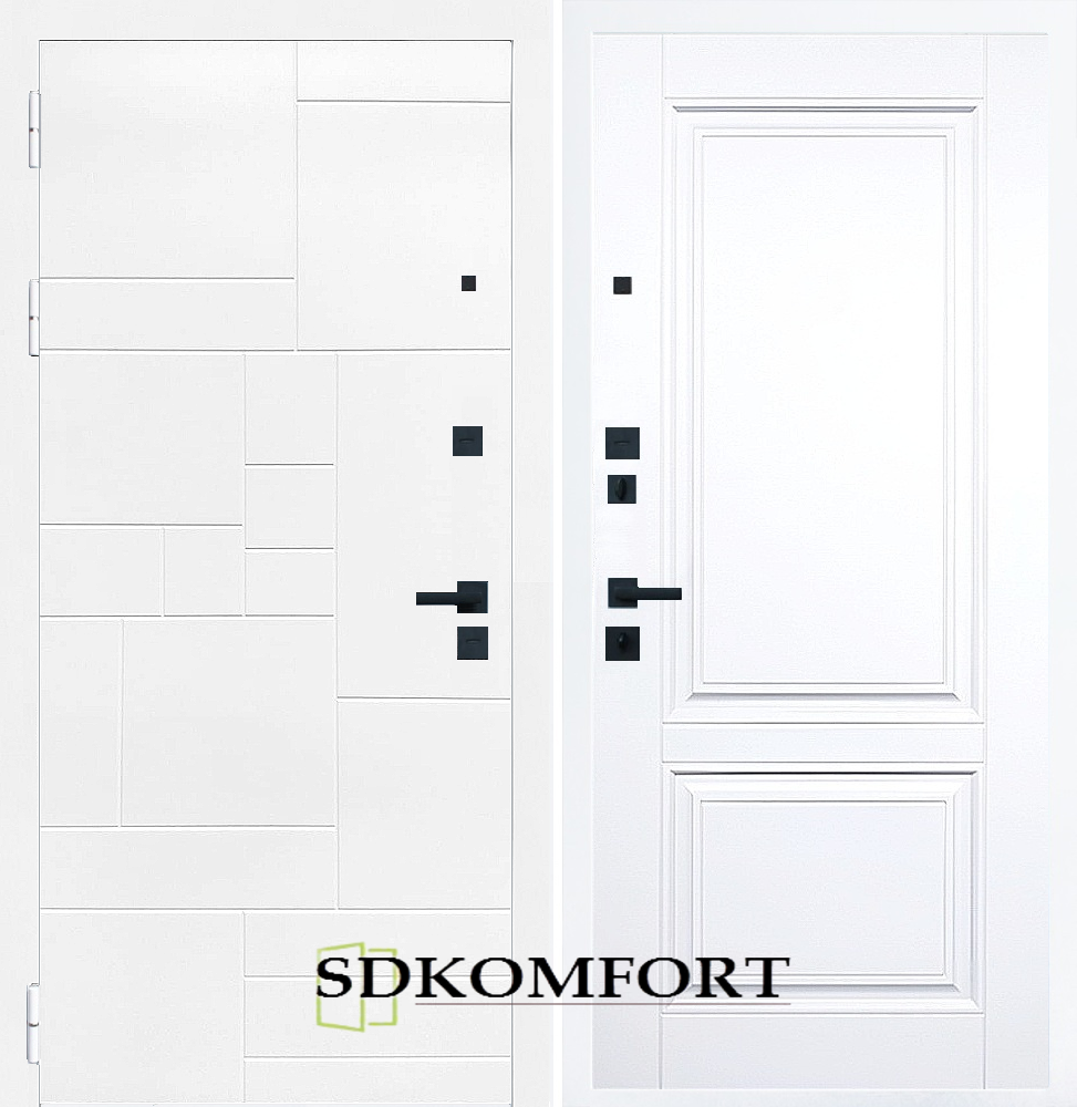Внешняя сторона : Лист металла 1.8мм. + Декоративная панель МДФ 12мм. Цвет "Белый матовый"