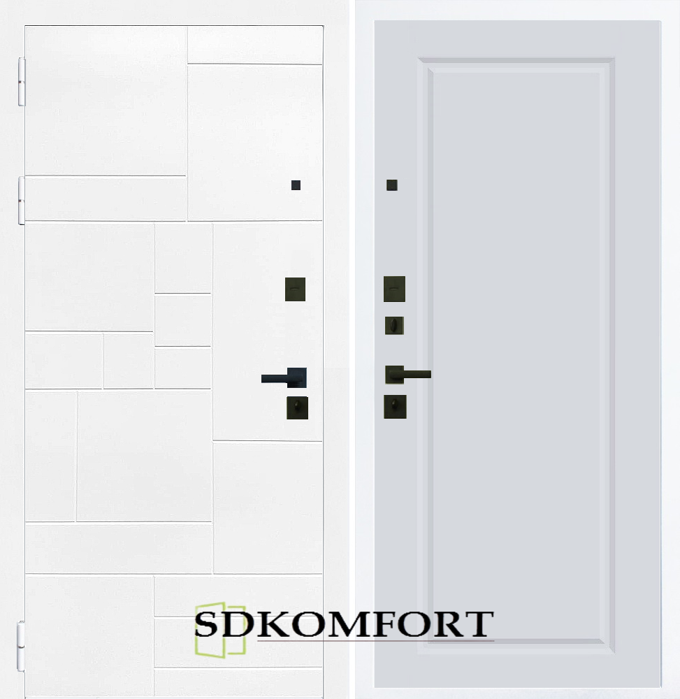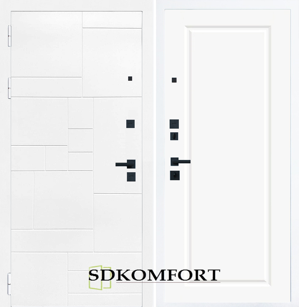 Внешняя сторона : Лист металла 1.8мм. + Декоративная панель МДФ 12мм. Цвет "Белый матовый"