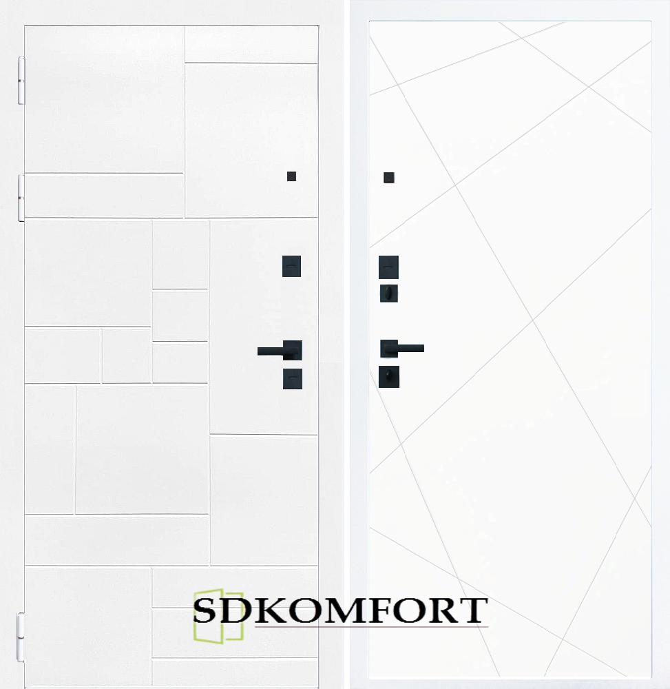 Внешняя сторона : Лист металла 1.8мм. + Декоративная панель МДФ 12мм. Цвет "Белый матовый"