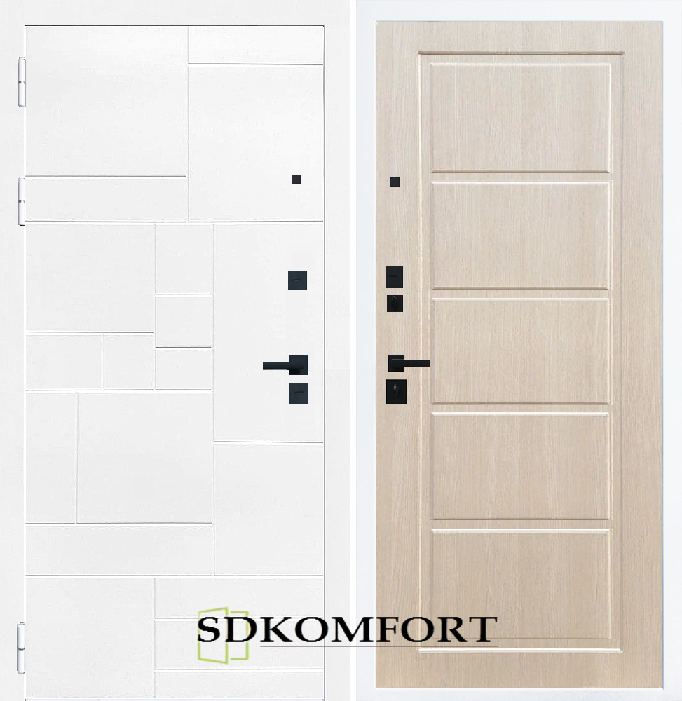 Внешняя сторона : Лист металла 1.8мм. + Декоративная панель МДФ 12мм. Цвет "Белый матовый"