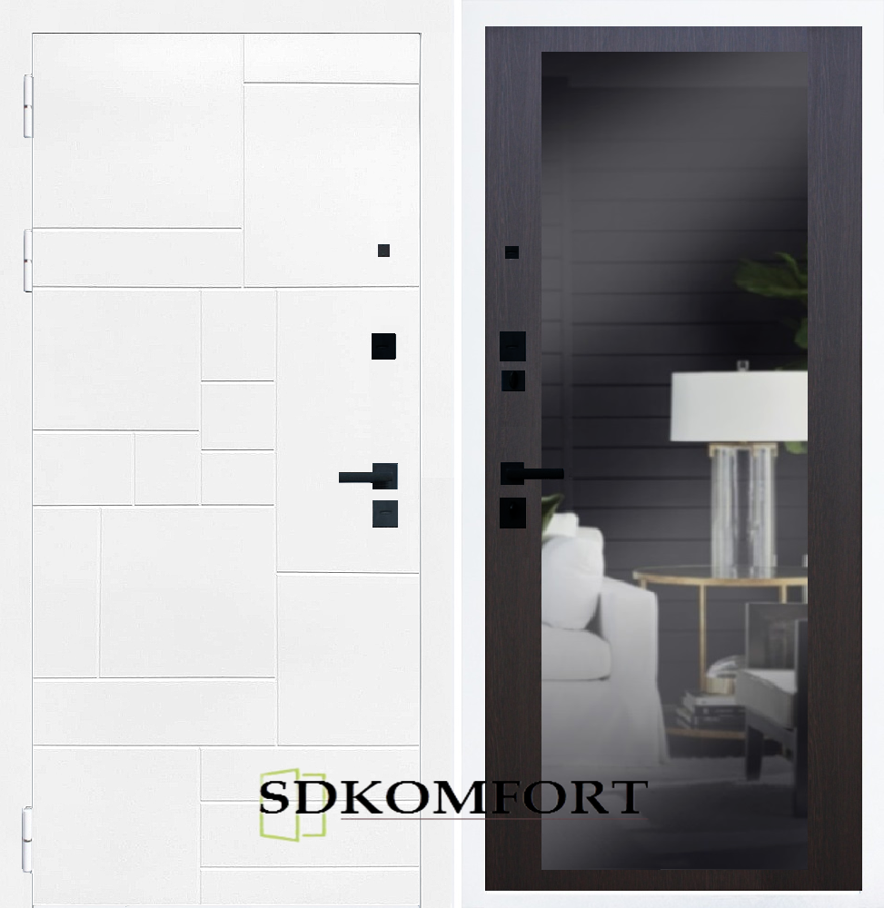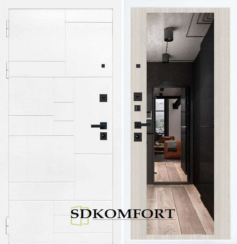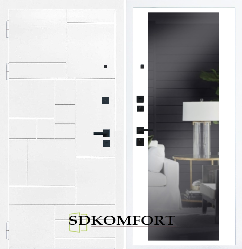 Внешняя сторона : Лист металла 1.8мм. + Декоративная панель МДФ 12мм. Цвет "Белый матовый"