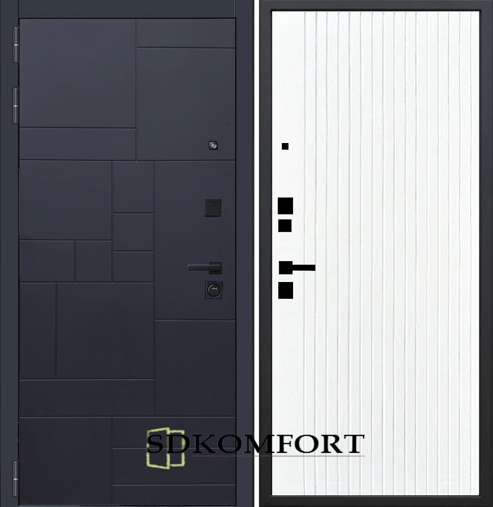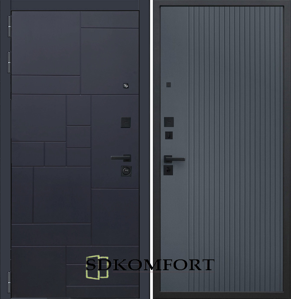 Внешняя сторона : Лист металла 1.8мм. + Декоративная панель МДФ 12мм. Цвет "Черный кварц"