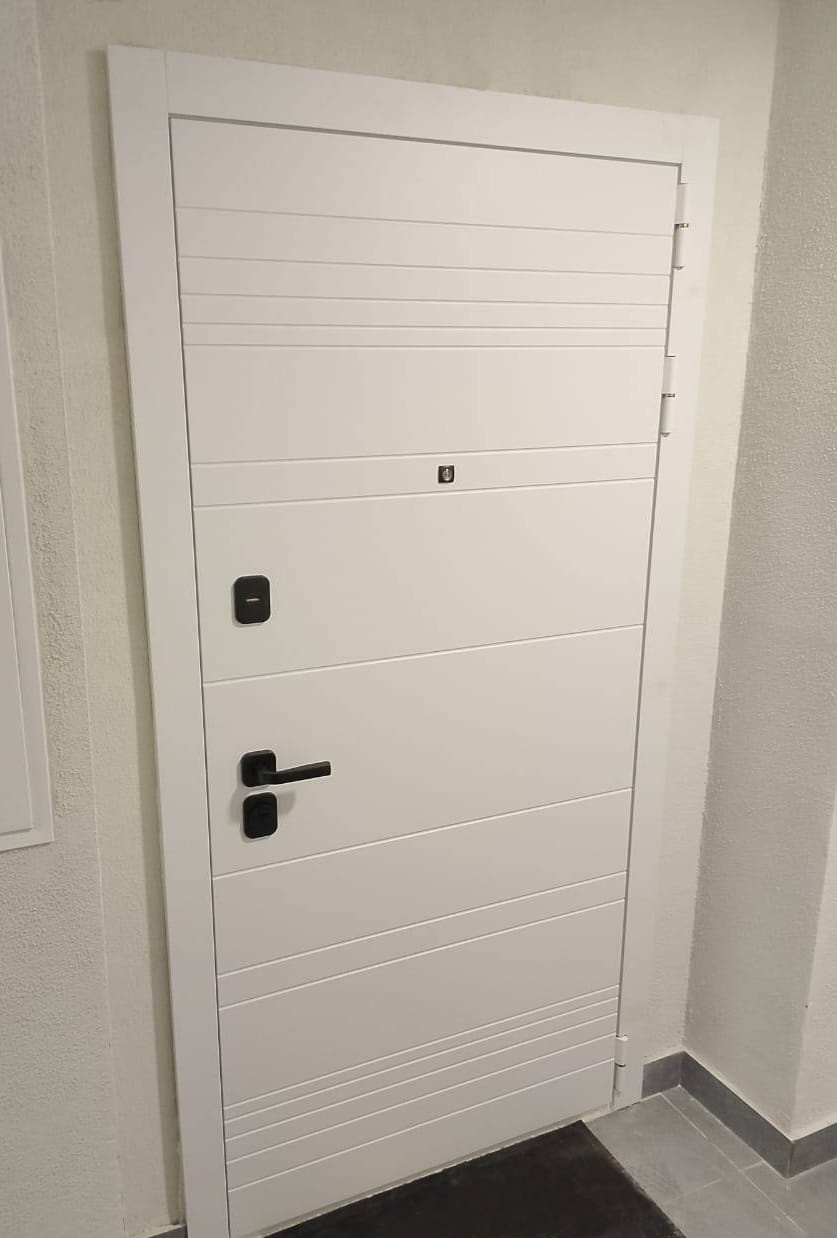 Внешняя сторона : Лист металла 1.8мм. + Декоративная панель МДФ 12мм. Цвет "Белый матовый"