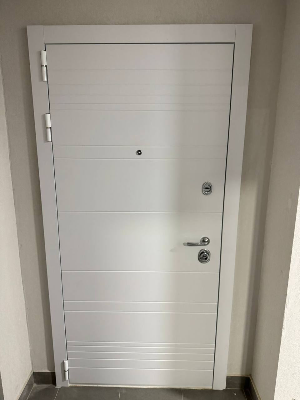 Внешняя сторона : Лист металла 1.8мм. + Декоративная панель МДФ 12мм. Цвет "Белый матовый"