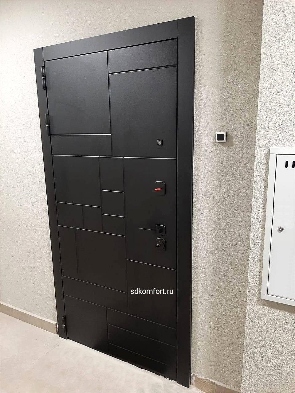 Внешняя сторона : Лист металла 1.8мм. + Декоративная панель МДФ 12мм. Цвет "Черный кварц"