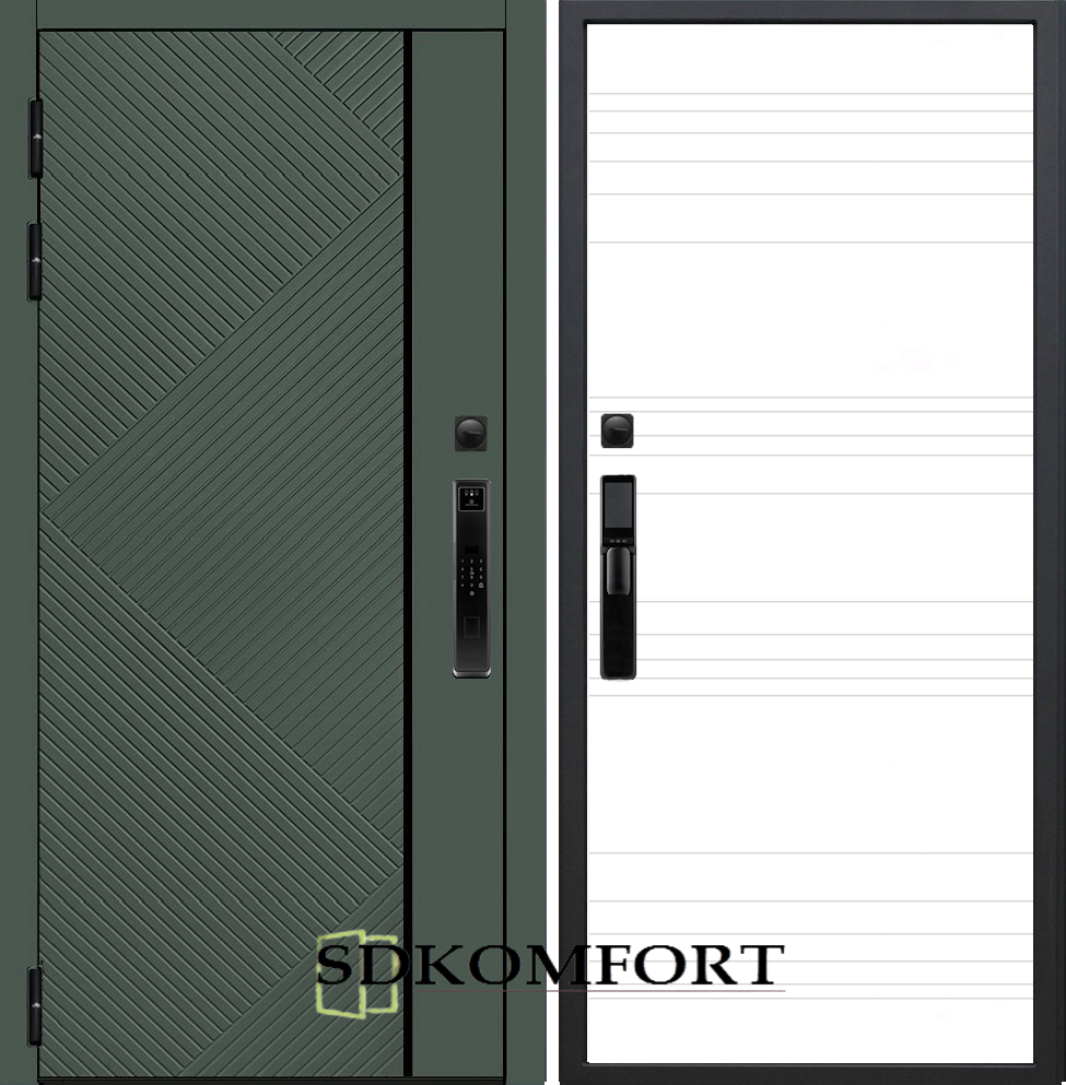Внешняя сторона : Лист металла 1.8мм. + МДФ 12мм. Цвет "Оливия"