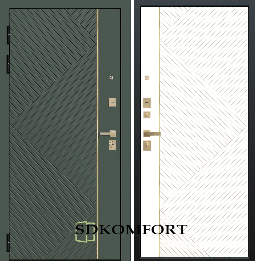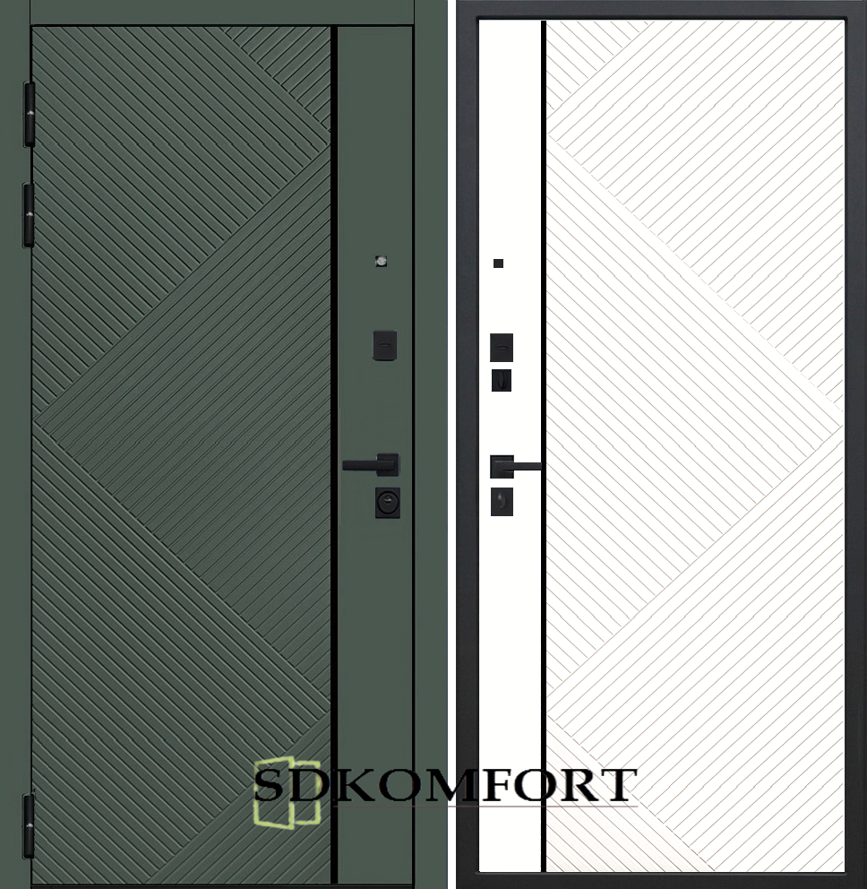 Внешняя сторона : Лист металла 1.8мм. + Декоративная панель МДФ 12мм. Цвет "Оливия"