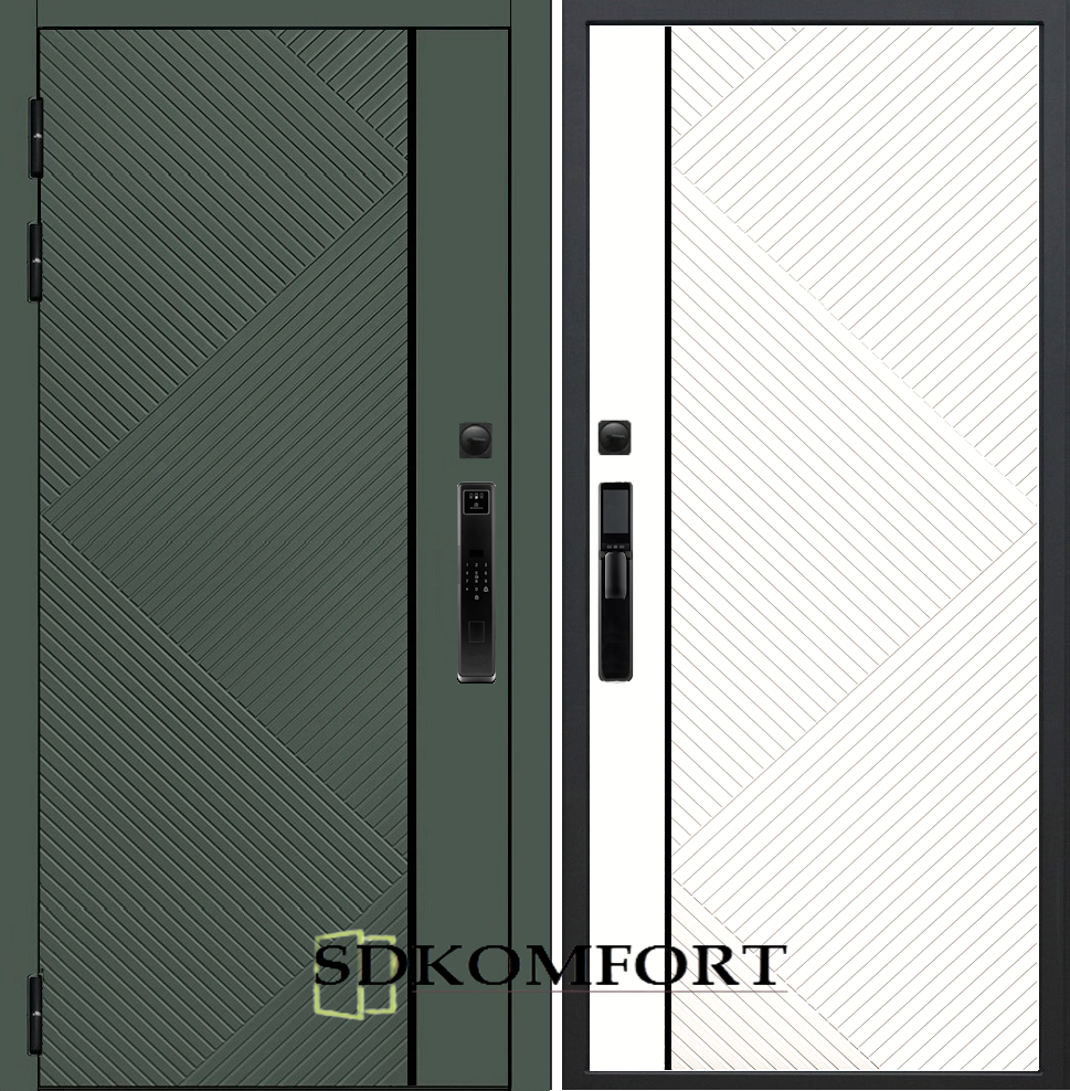 Внешняя сторона : Лист металла 1.8мм. + МДФ 12мм. Цвет "Оливия"