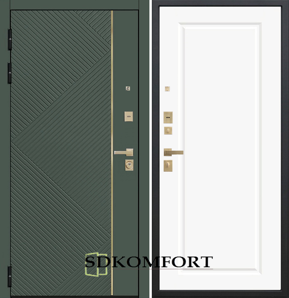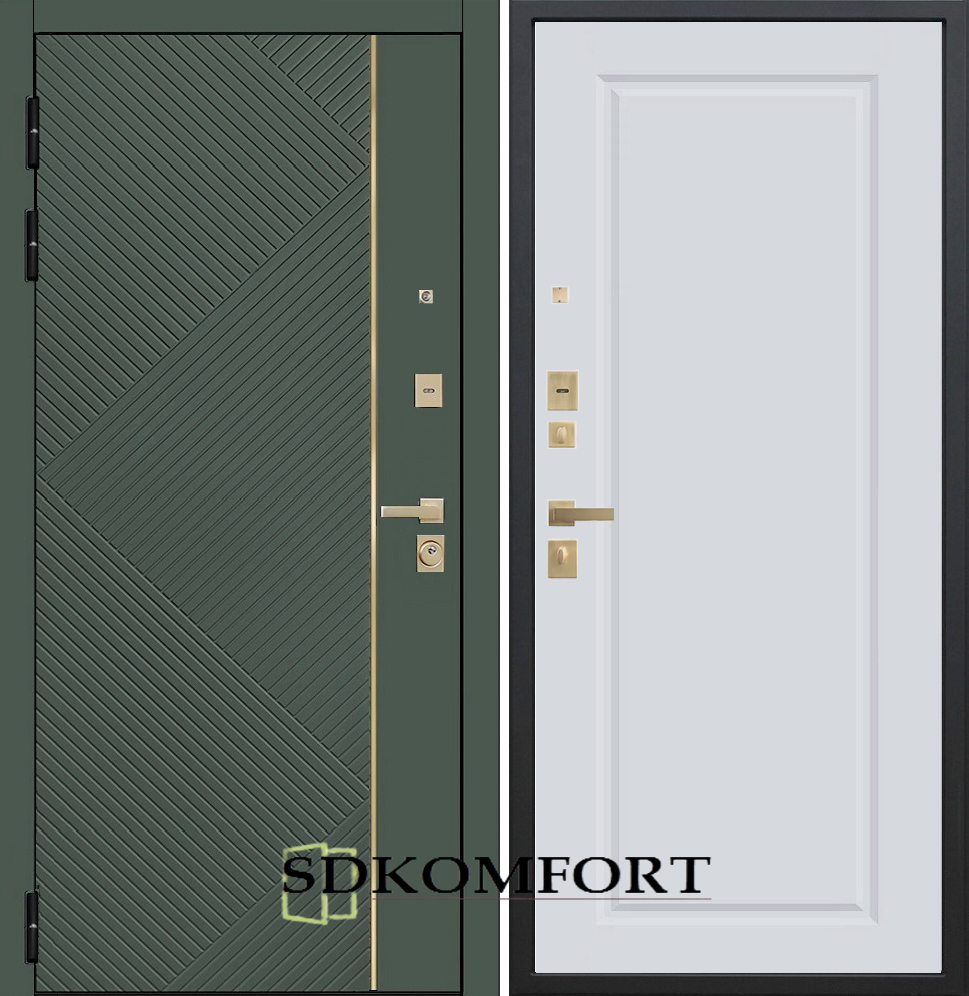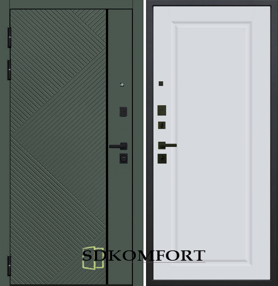 Внешняя сторона : Лист металла 1.8мм. + Декоративная панель МДФ 12мм. Цвет "Оливия"