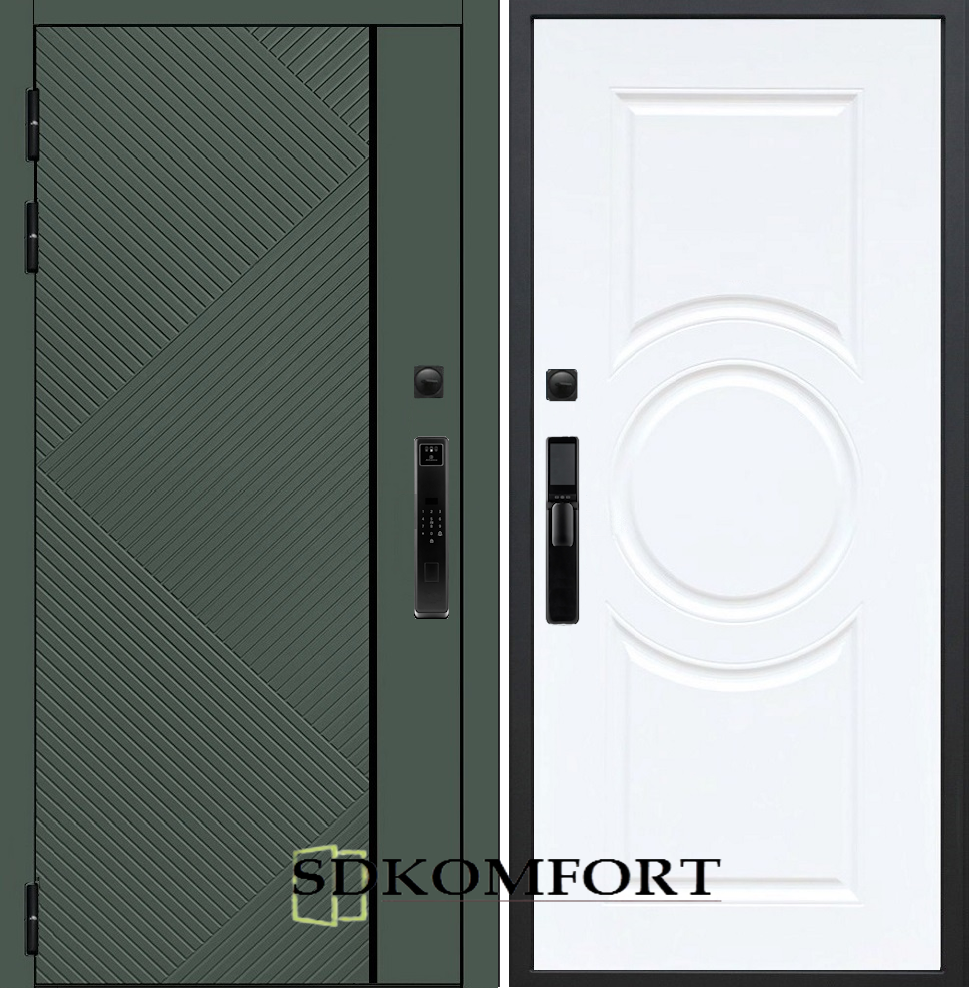 Внешняя сторона : Лист металла 1.8мм. + МДФ 12мм. Цвет "Оливия"