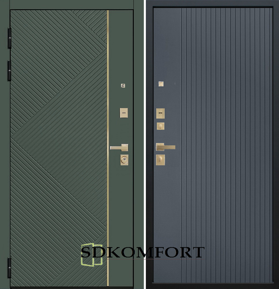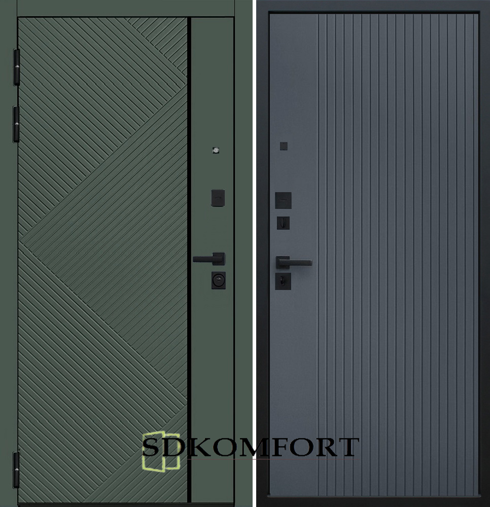 Внешняя сторона : Лист металла 1.8мм. + Декоративная панель МДФ 12мм. Цвет "Оливия"