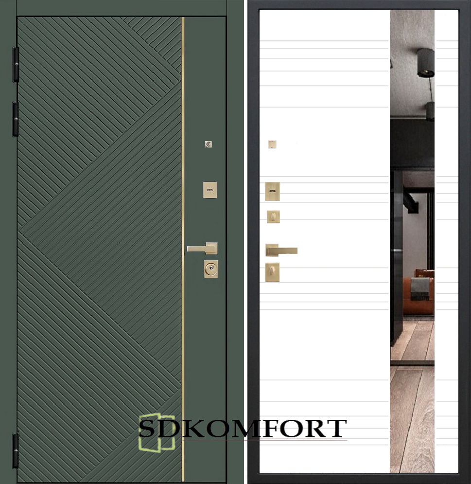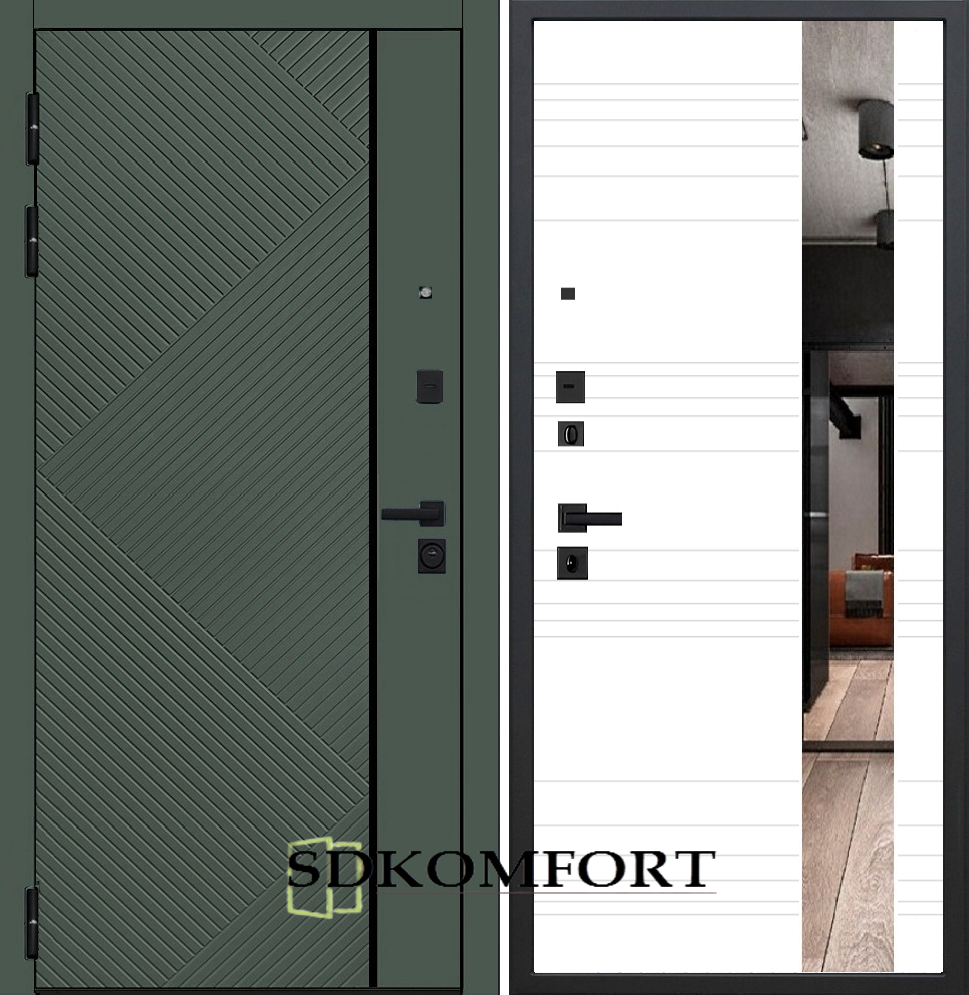 Внешняя сторона : Лист металла 1.8мм. + Декоративная панель МДФ 12мм. Цвет "Оливия"