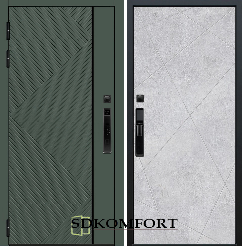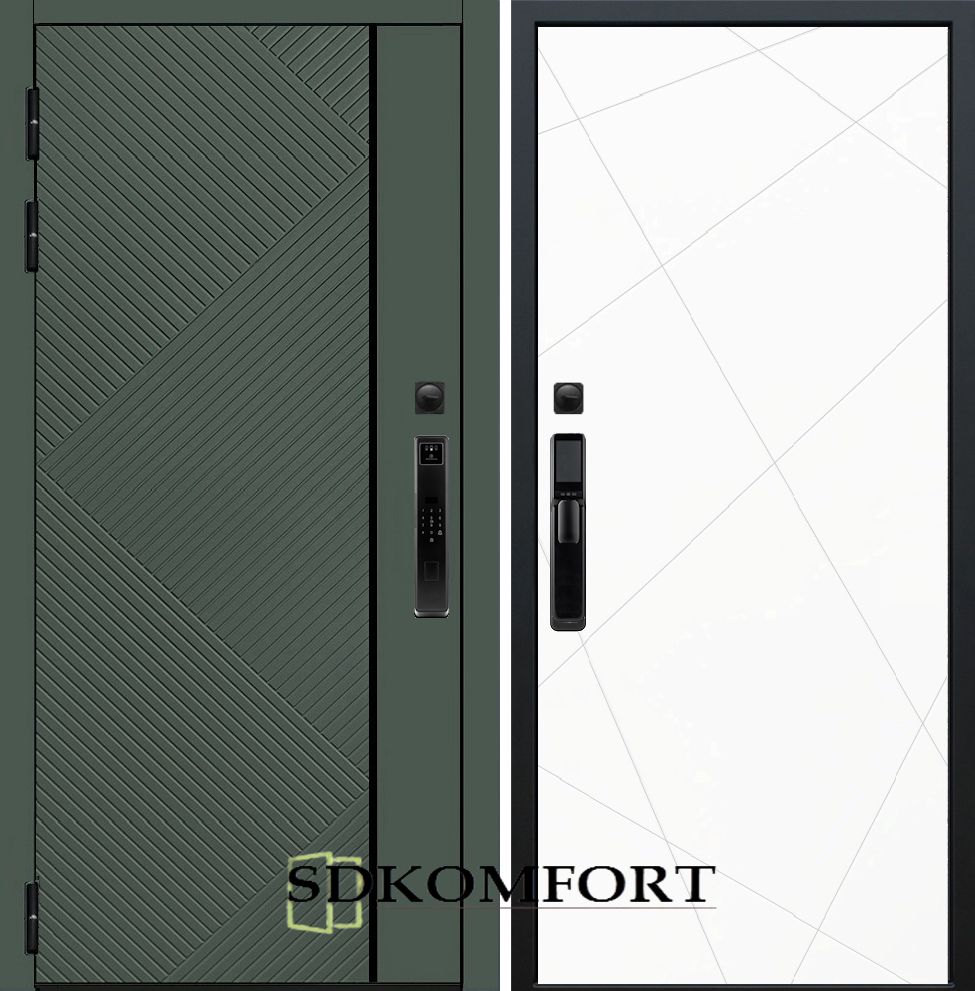 Внешняя сторона : Лист металла 1.8мм. + МДФ 12мм. Цвет "Оливия"
