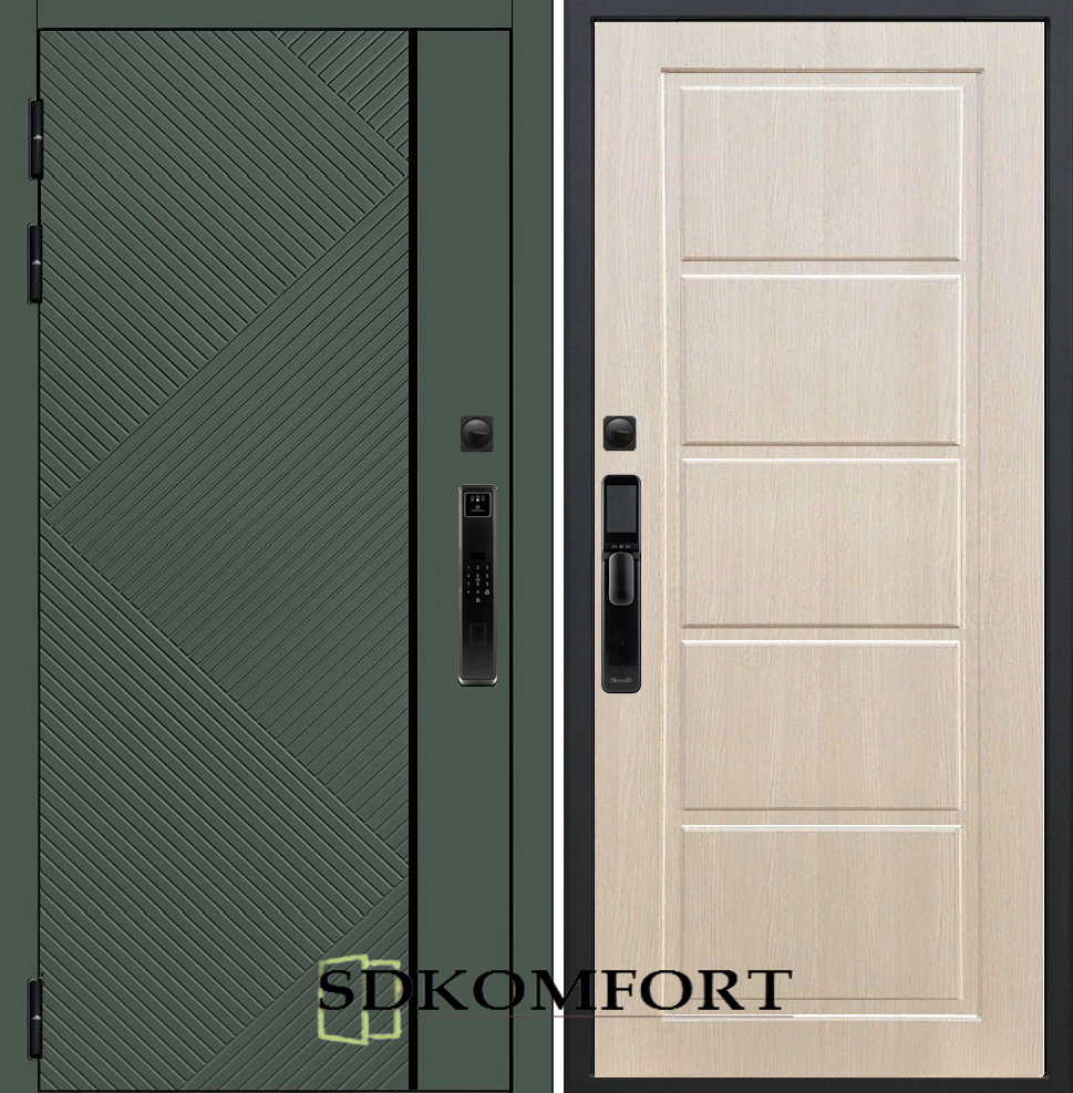 Внешняя сторона : Лист металла 1.8мм. + МДФ 12мм. Цвет "Оливия"