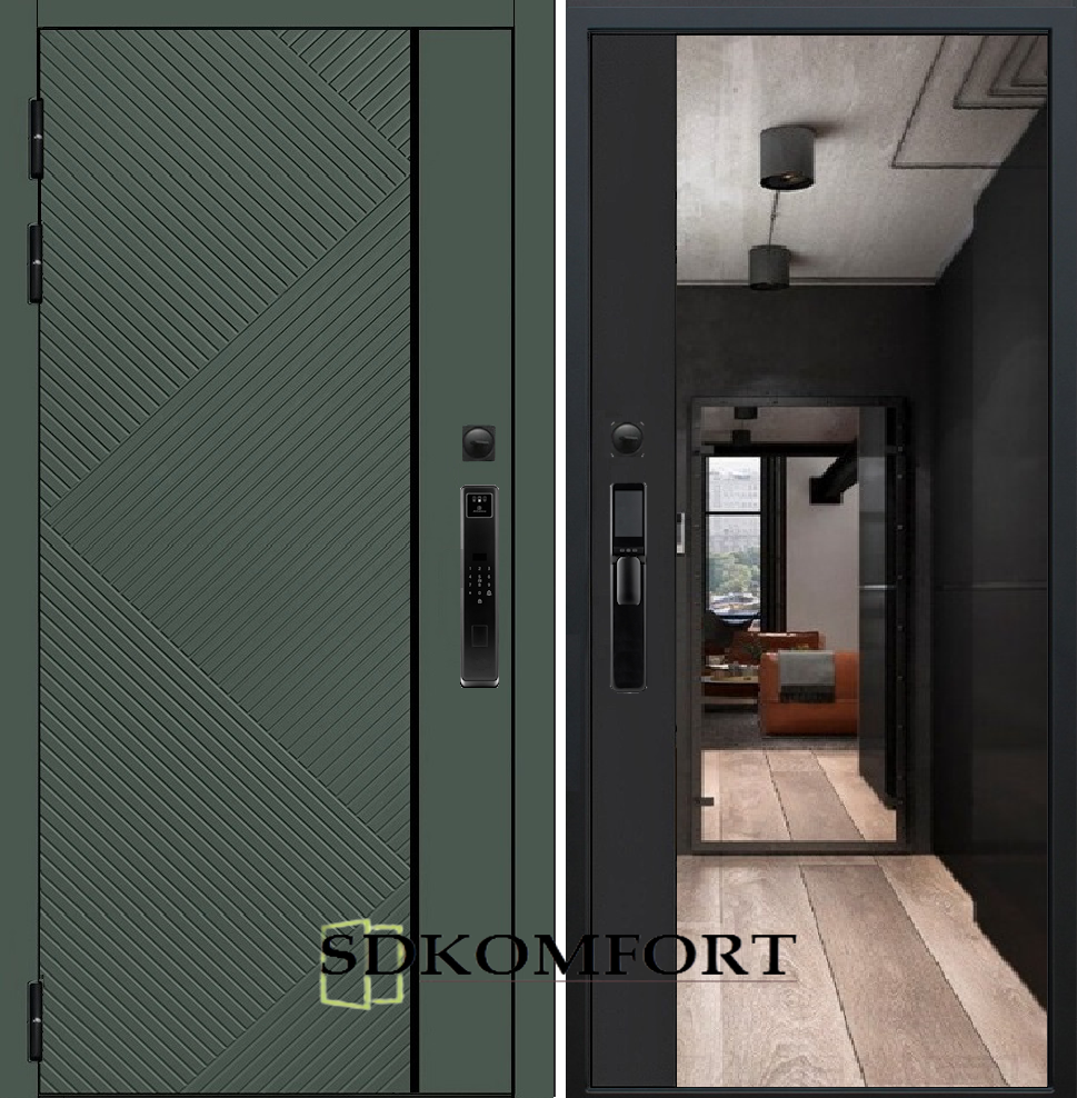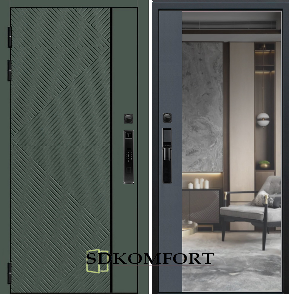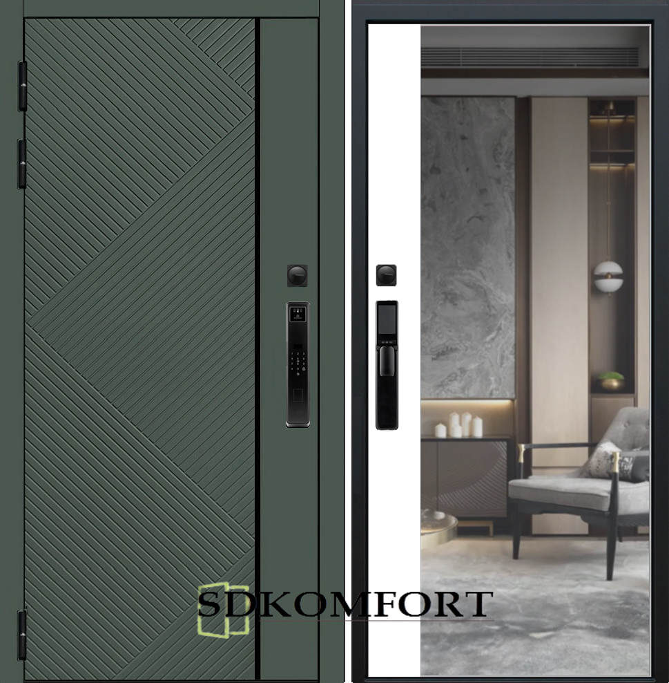 Внешняя сторона : Лист металла 1.8мм. + МДФ 12мм. Цвет "Оливия"