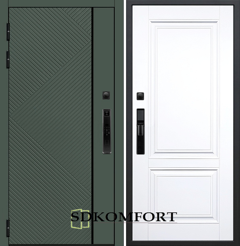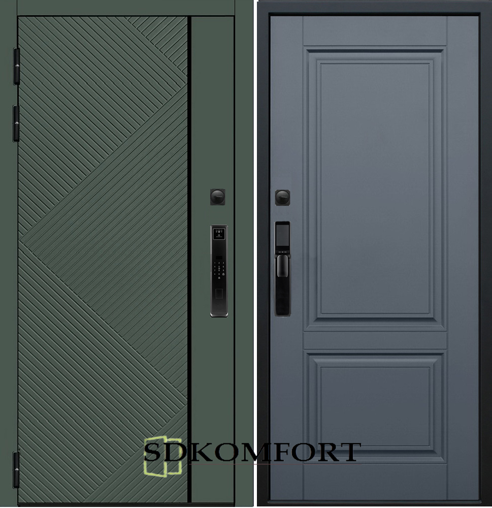 Внешняя сторона : Лист металла 1.8мм. + МДФ 12мм. Цвет "Оливия"