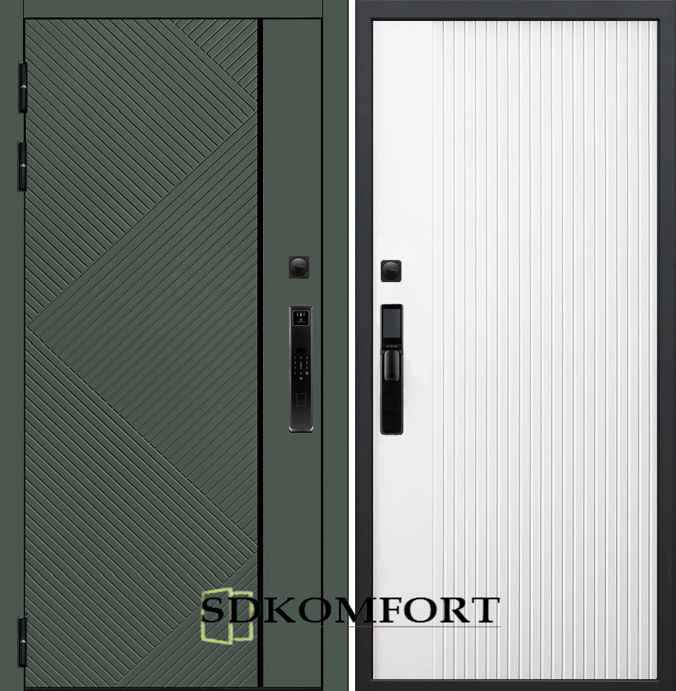 Внешняя сторона : Лист металла 1.8мм. + МДФ 12мм. Цвет "Оливия"