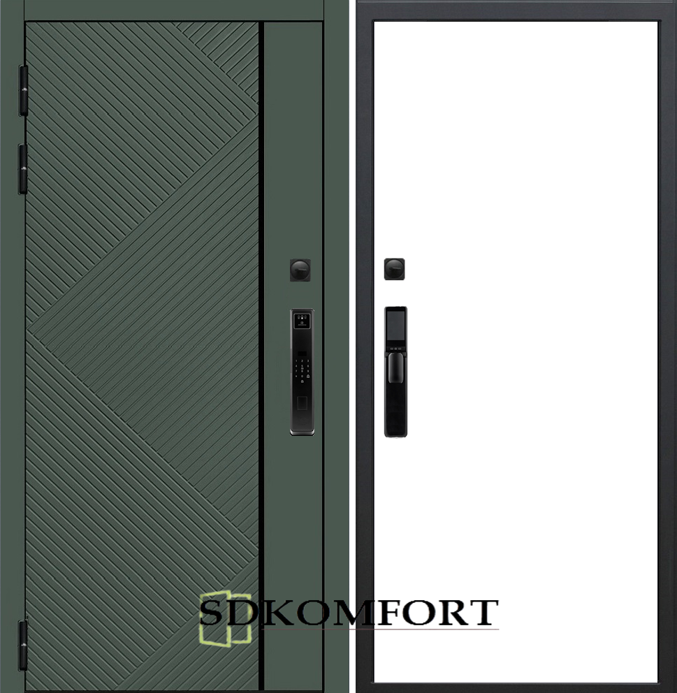 Внешняя сторона : Лист металла 1.8мм. + МДФ 12мм. Цвет "Оливия"