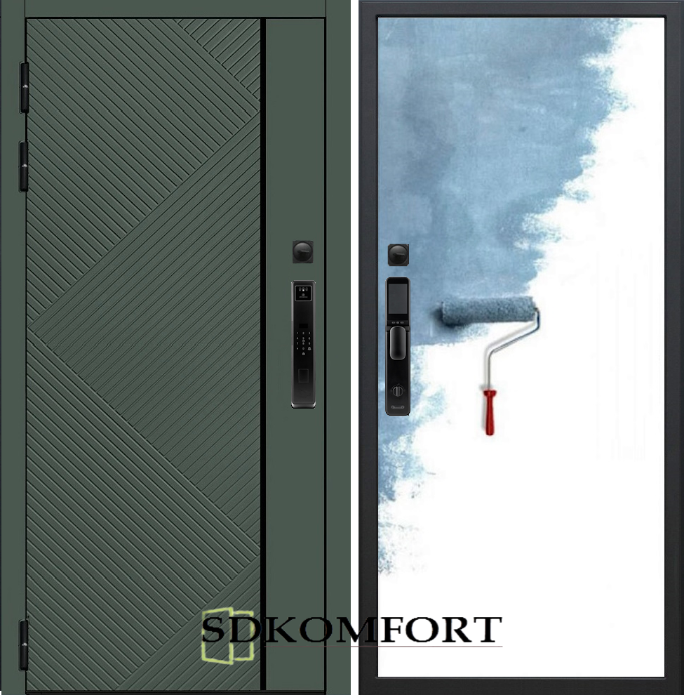 Внешняя сторона : Лист металла 1.8мм. + МДФ 12мм. Цвет "Оливия"