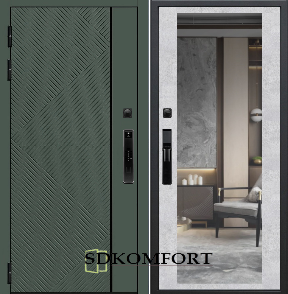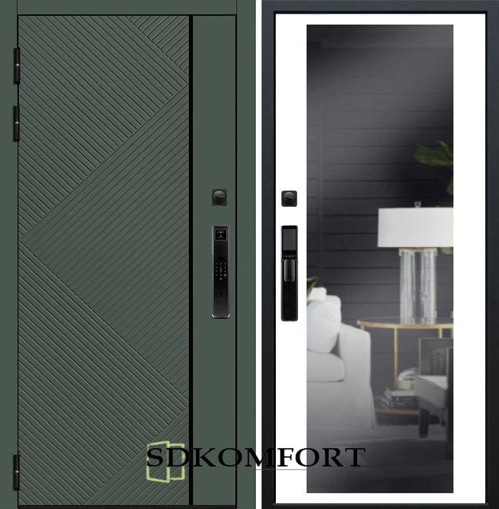 Внешняя сторона : Лист металла 1.8мм. + МДФ 12мм. Цвет "Оливия"