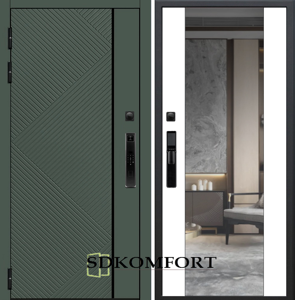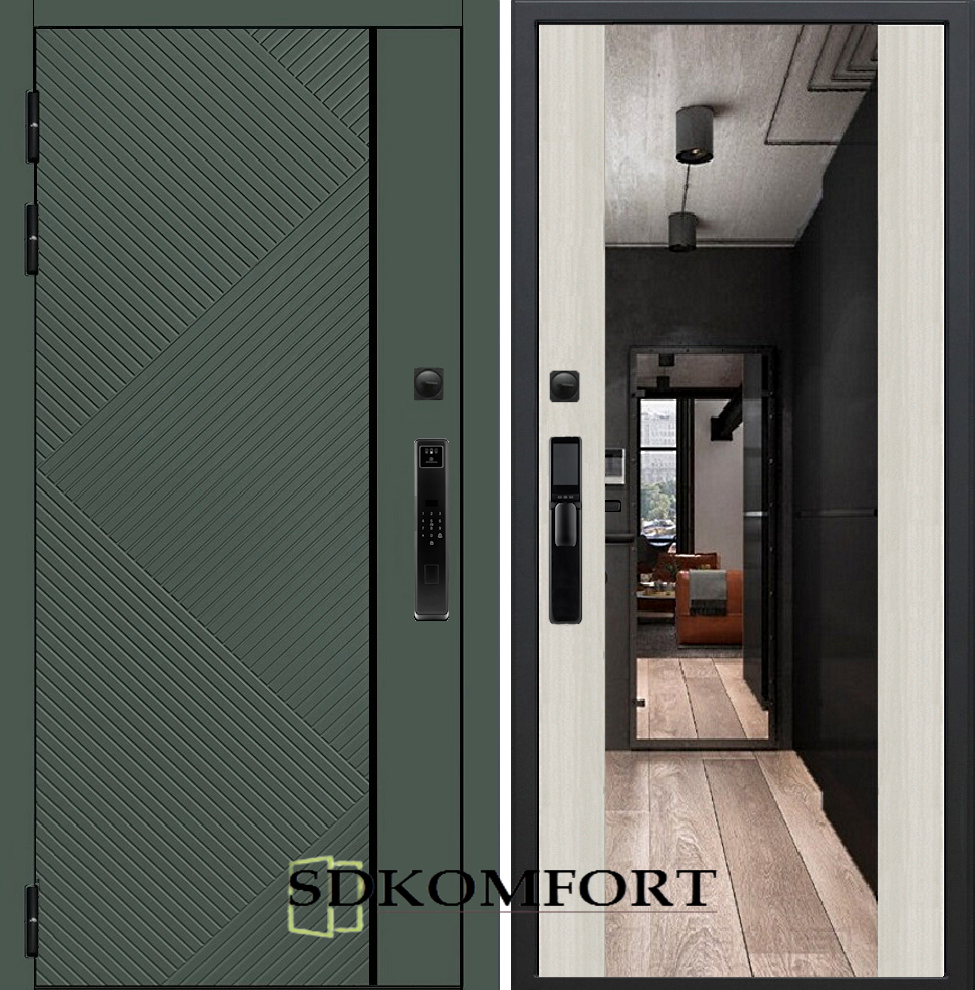 Внешняя сторона : Лист металла 1.8мм. + МДФ 12мм. Цвет "Оливия"