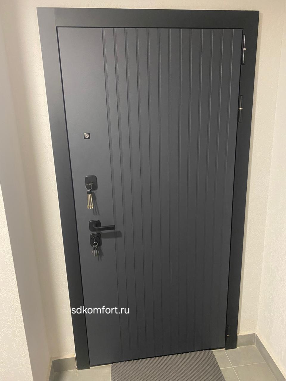 Внешняя сторона : Лист металла 1.8мм. + Декоративная панель МДФ 12мм. Цвет "Графит" наличник "Черный кварц"