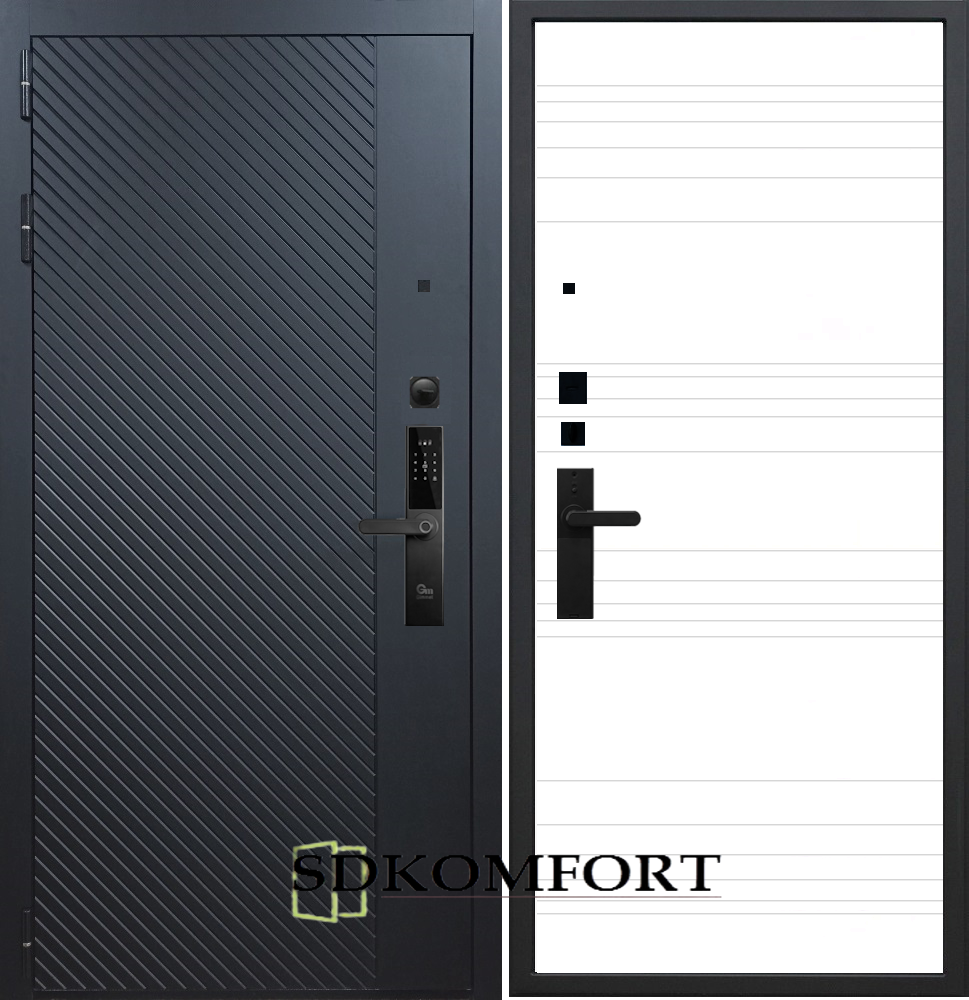 Внешняя сторона : Лист металла 1.8мм. + Декоративная панель МДФ 12мм. Цвет "Черный кварц"