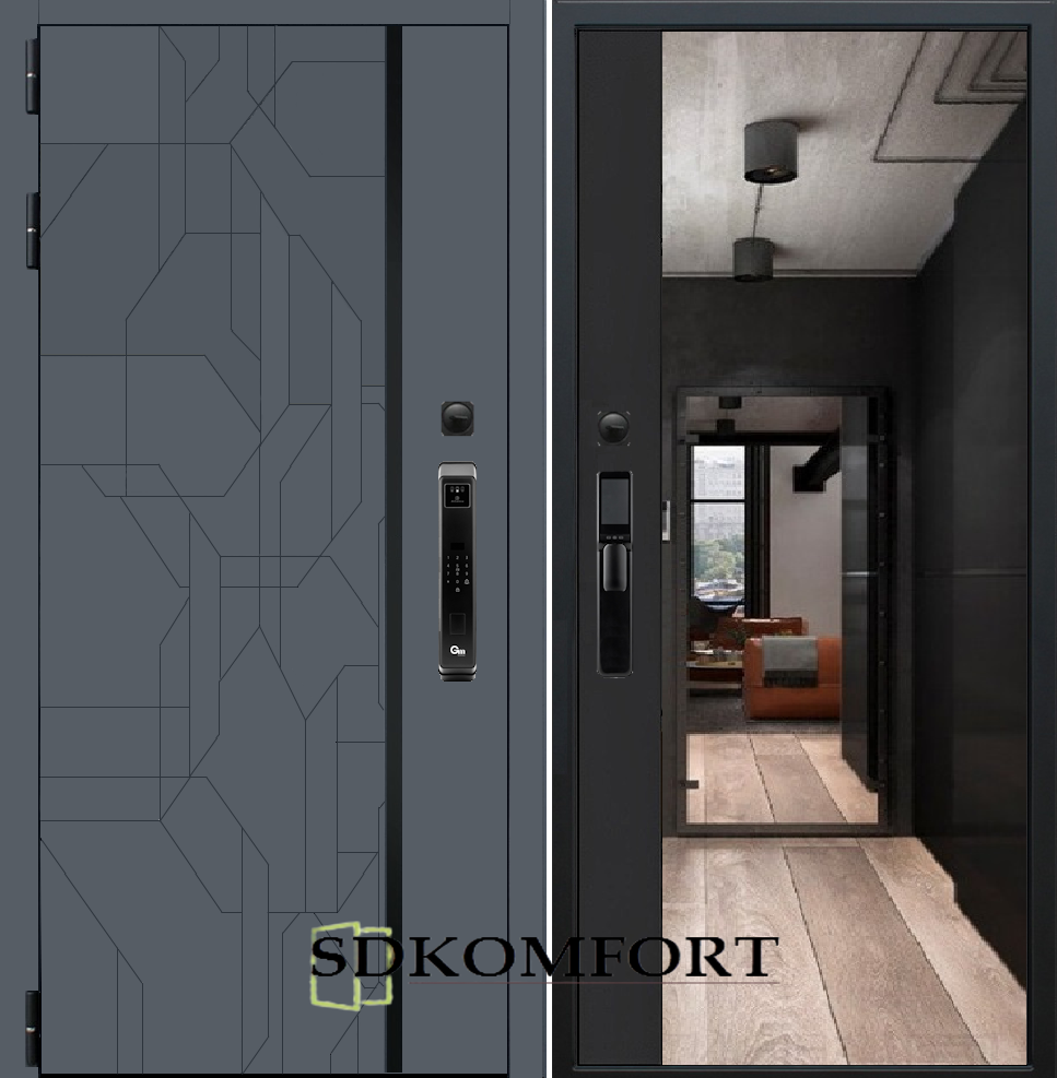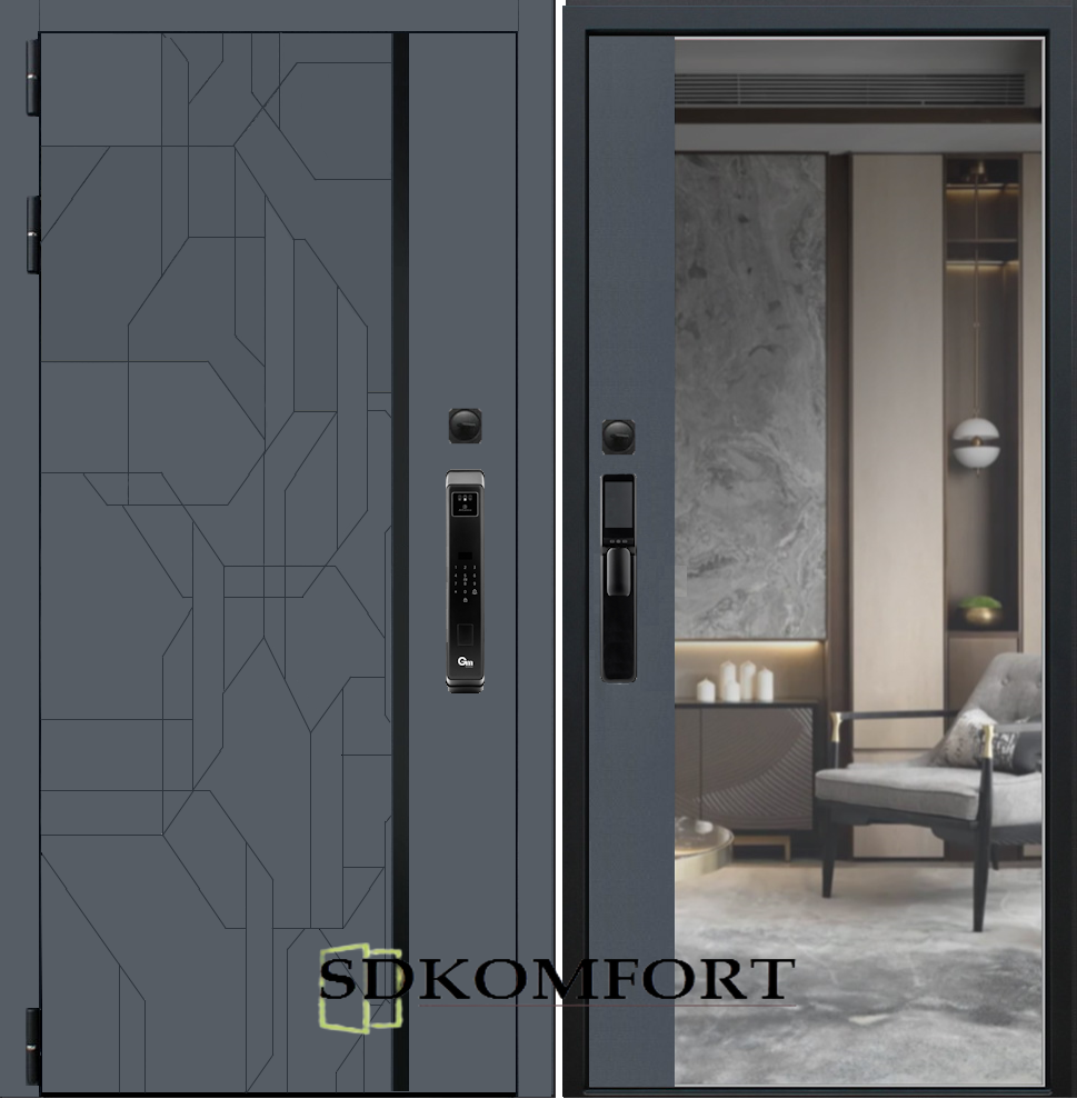 Внешняя сторона : Лист металла 1.8мм. + МДФ 12мм. Цвет "Графит"