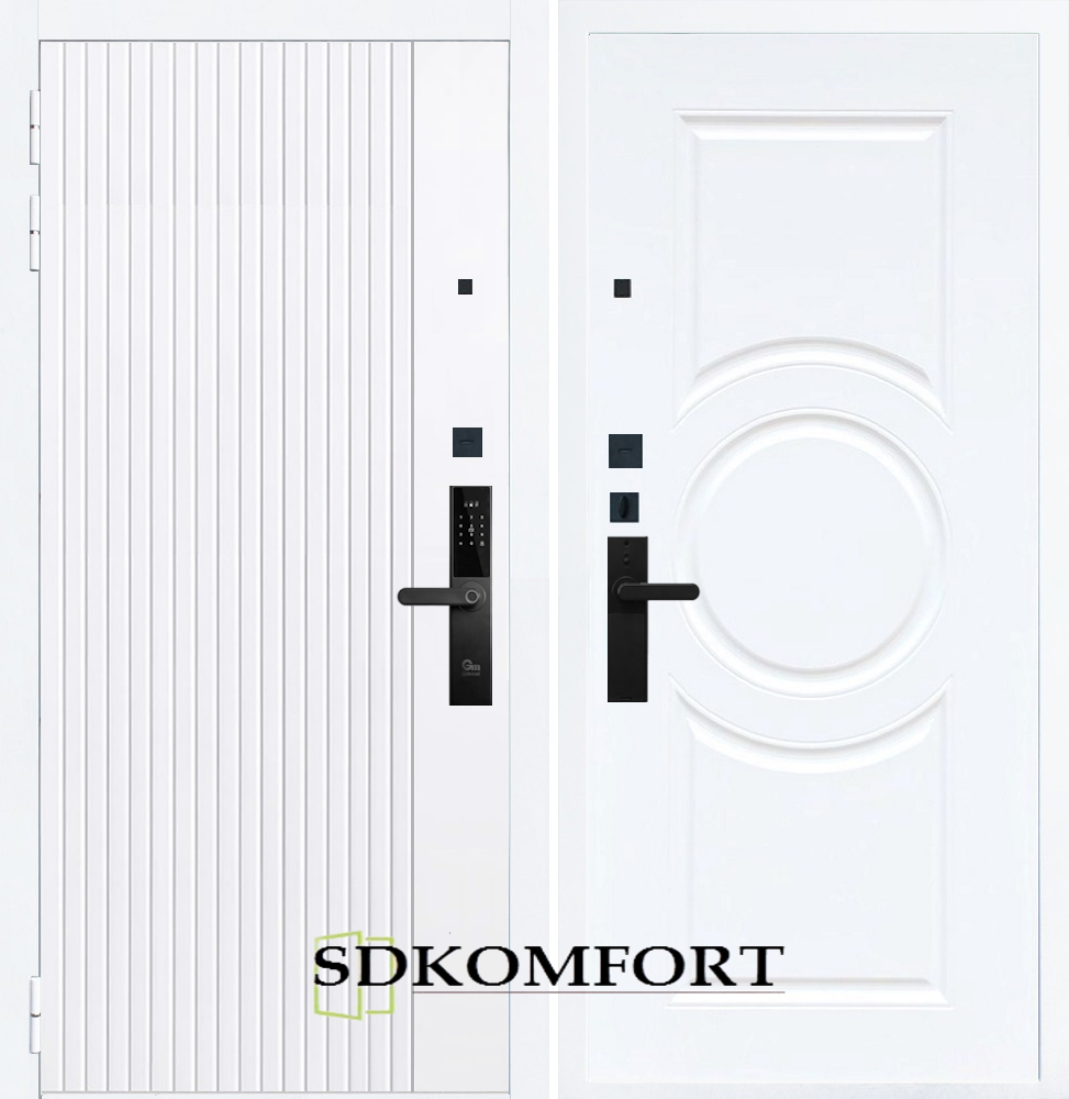 Внешняя сторона : Лист металла 1.8мм. + Декоративная панель МДФ 12мм. Цвет "Белый матовый"