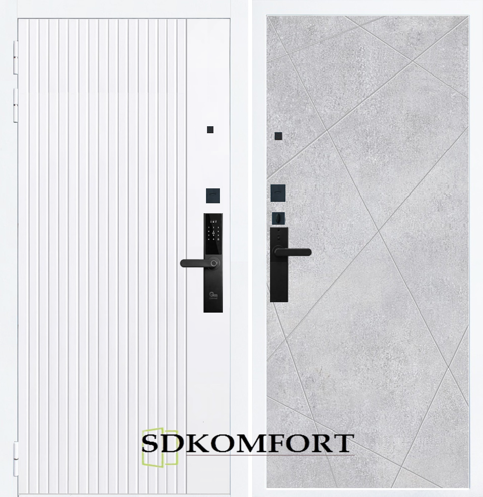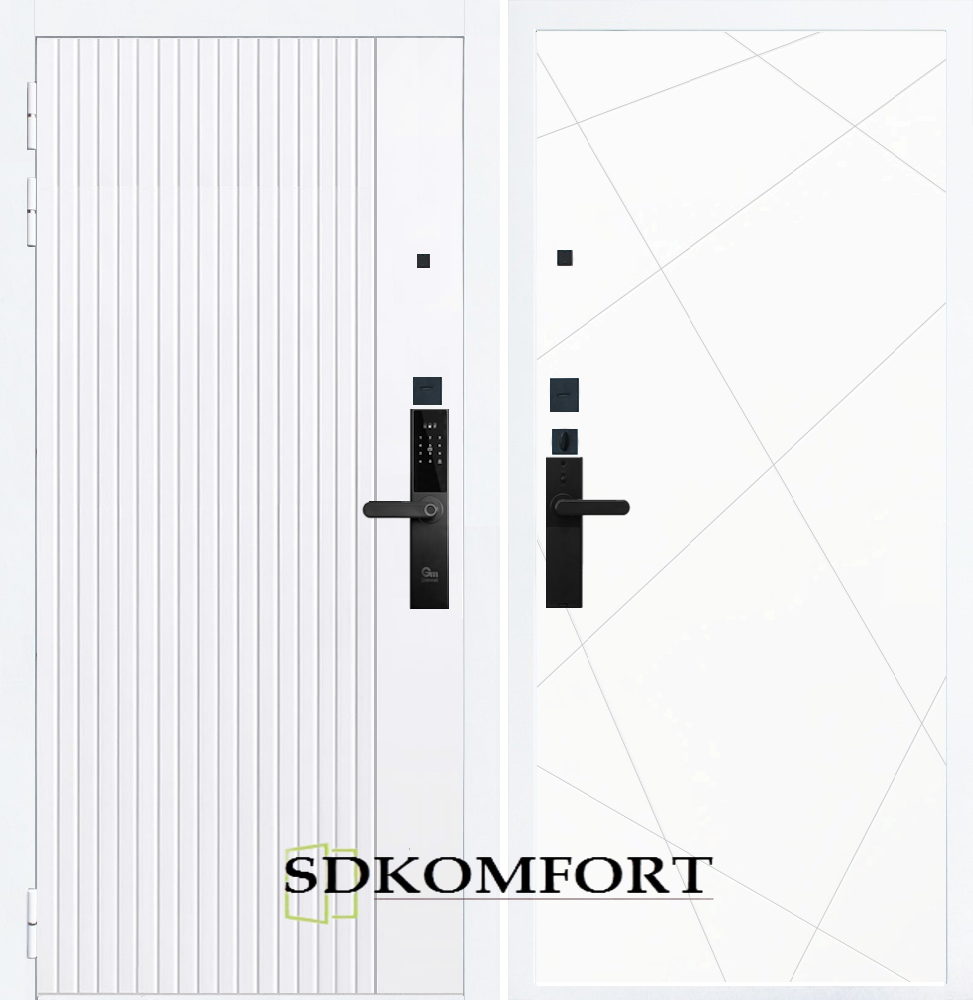 Внешняя сторона : Лист металла 1.8мм. + Декоративная панель МДФ 12мм. Цвет "Белый матовый"
