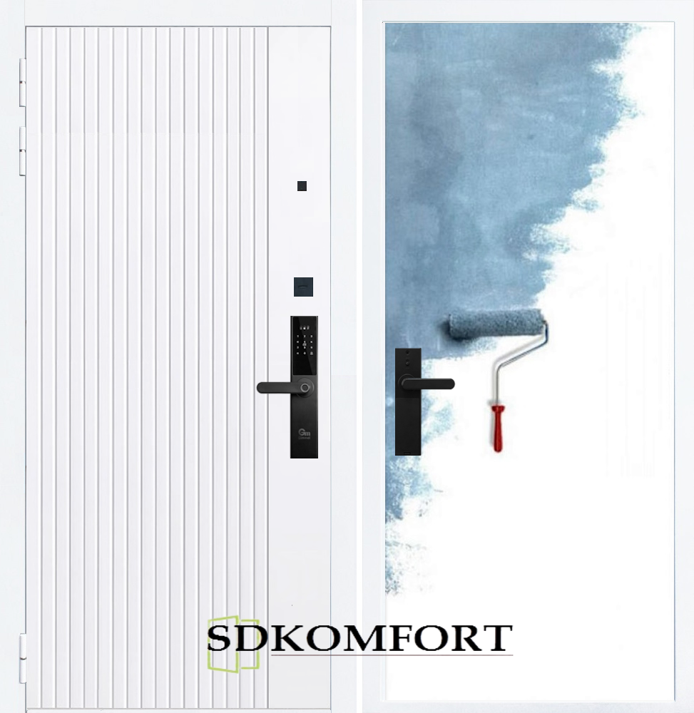 Внешняя сторона : Лист металла 1.8мм. + Декоративная панель МДФ 12мм. Цвет "Белый матовый"