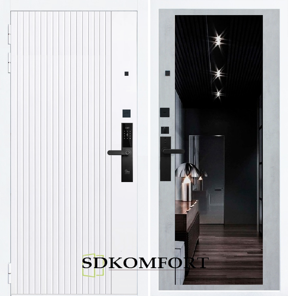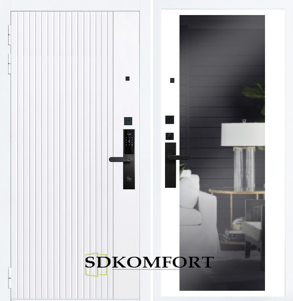 Внешняя сторона : Лист металла 1.8мм. + Декоративная панель МДФ 12мм. Цвет "Белый матовый"
