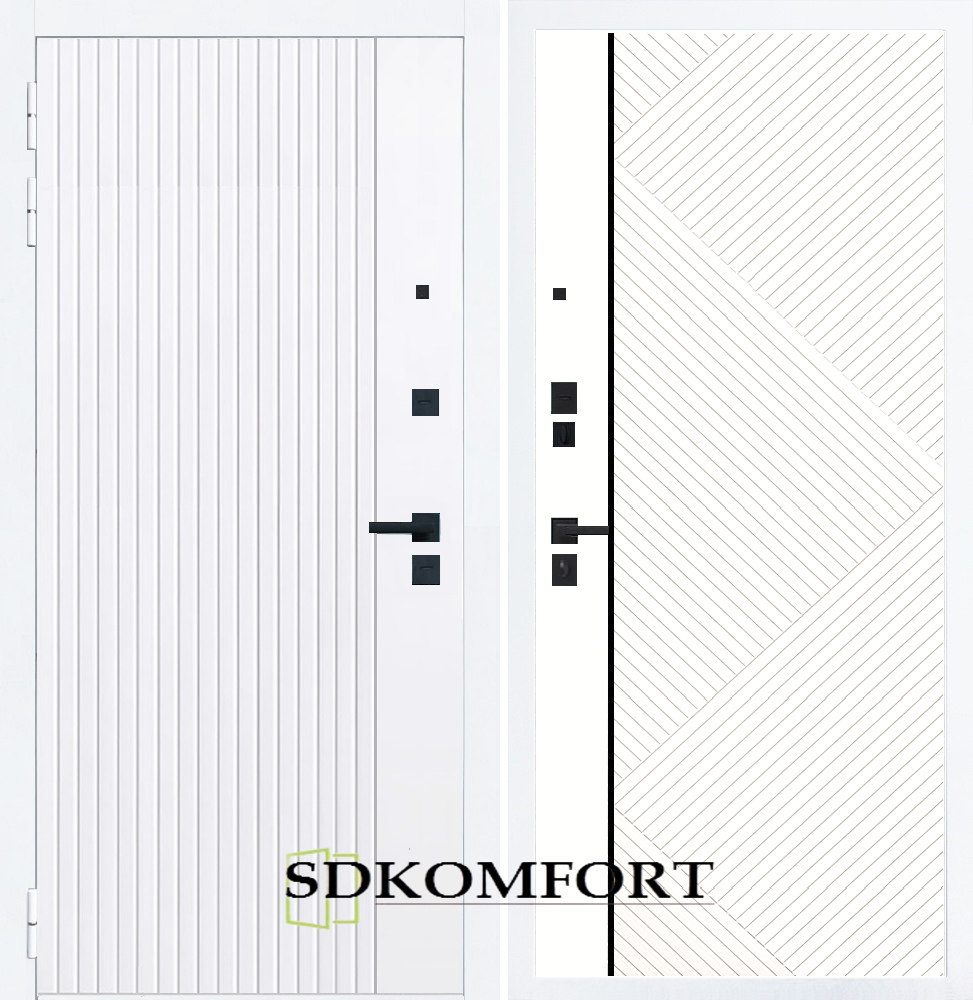 Внешняя сторона : Лист металла 1.8мм. + Декоративная панель МДФ 12мм. Цвет "Белый матовый"