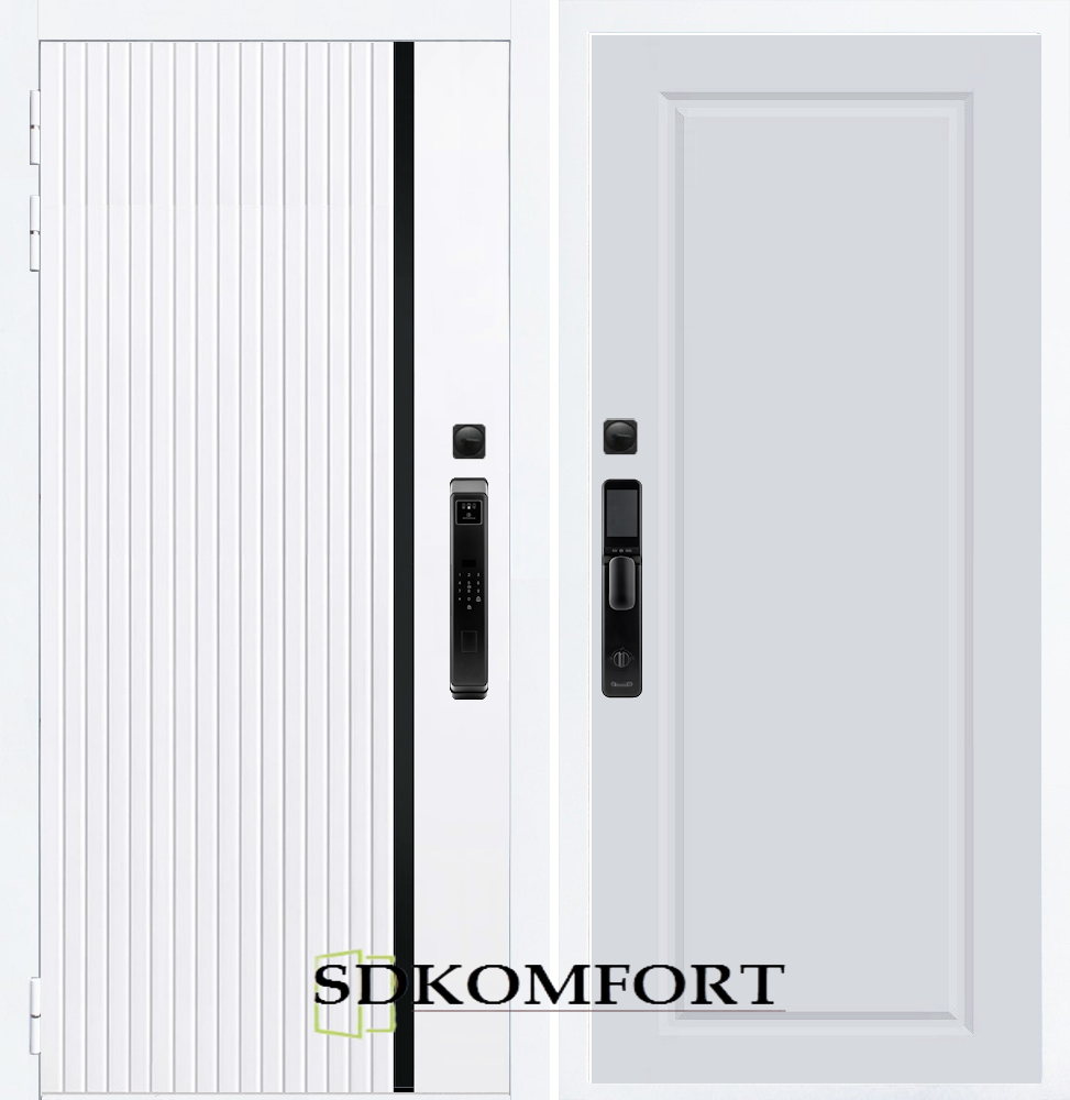 Внешняя сторона : Лист металла 1.8мм. + МДФ 12мм. Цвет "Белый Матовый"