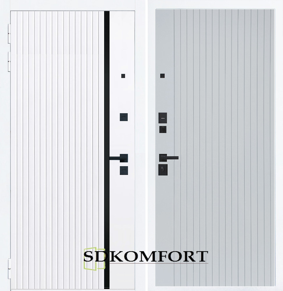 Внешняя сторона : Лист металла 1.8мм. + Декоративная панель МДФ 12мм. Цвет "Белый матовый"