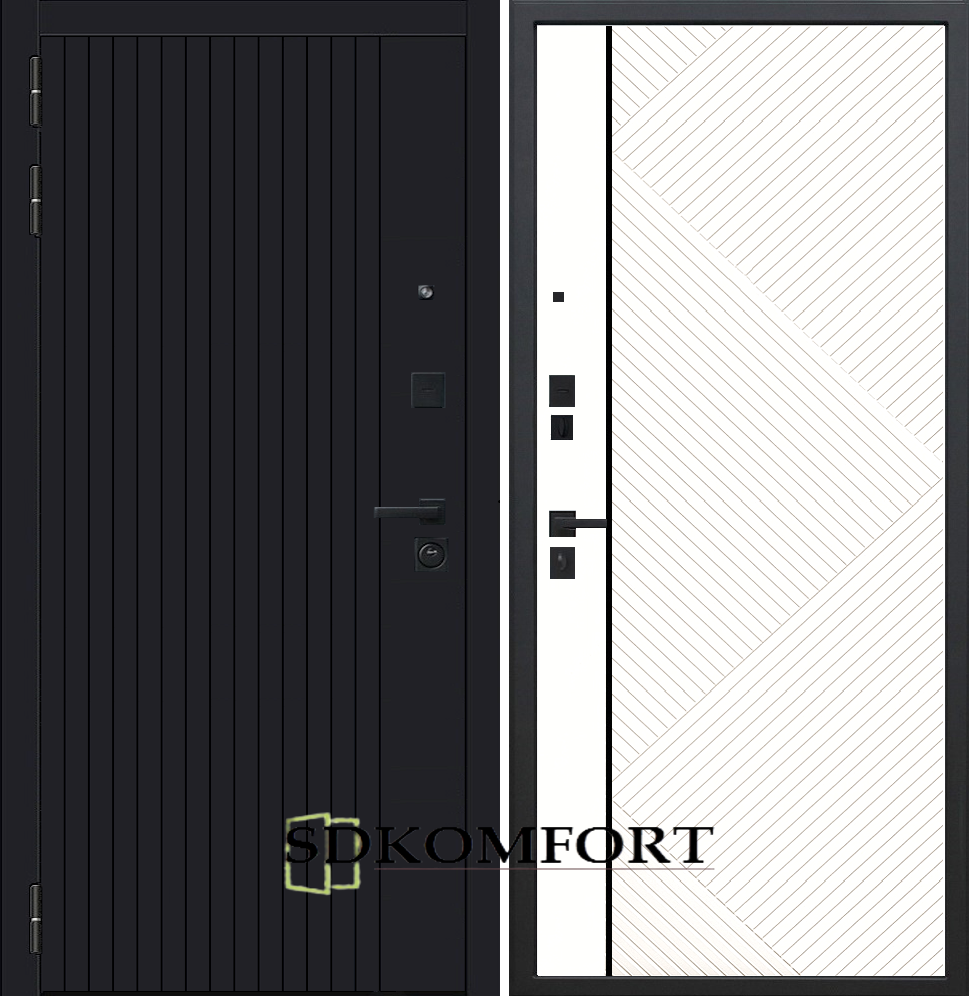 Внешняя сторона : Лист металла 1.8мм. + Декоративная панель МДФ 12мм. Цвет "Черный кварц"