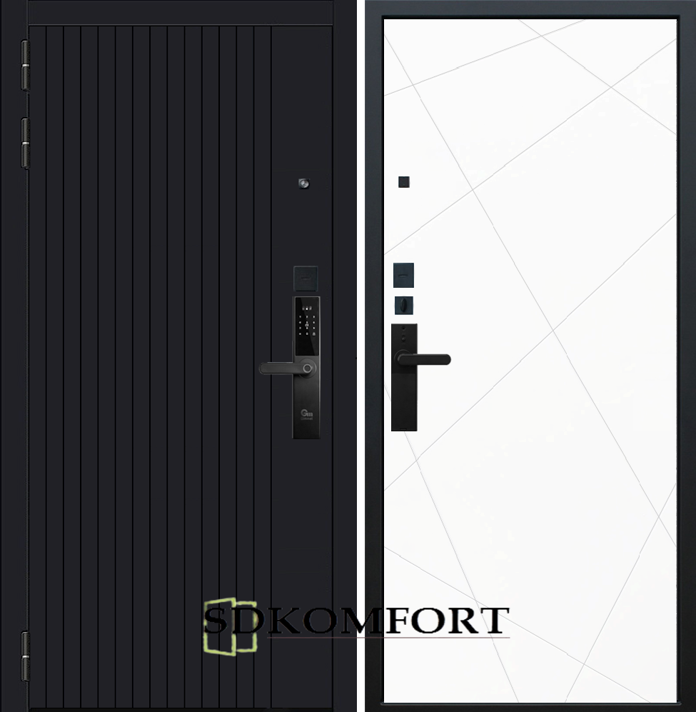Внешняя сторона : Лист металла 1.8мм. + Декоративная панель МДФ 12мм. Цвет "Черный кварц"