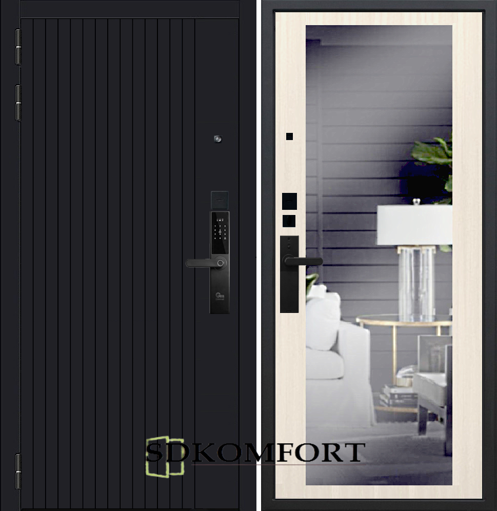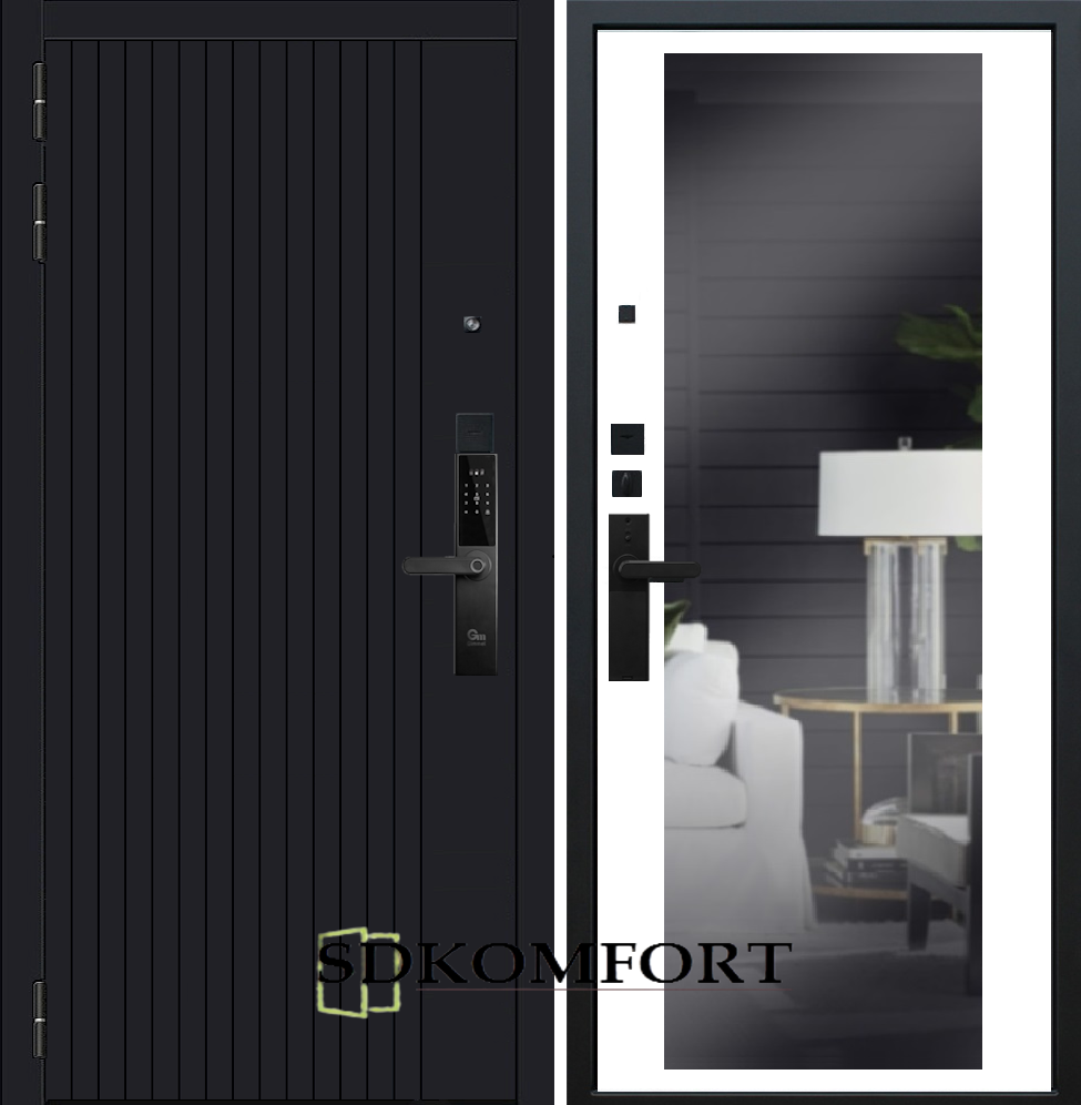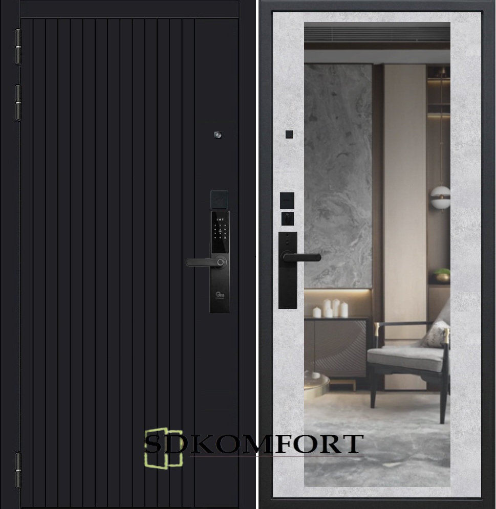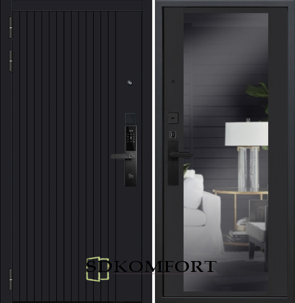 Внешняя сторона : Лист металла 1.8мм. + Декоративная панель МДФ 12мм. Цвет "Черный кварц"